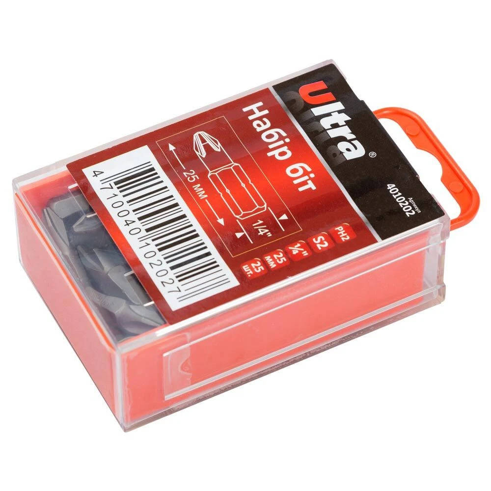 Набір біт PН2×25мм 1/4" 25шт S2 (пласт кейс) ULTRA (4010202) призначений для використання в ручному, механізованому і електроінструменті під тип шліців PH.