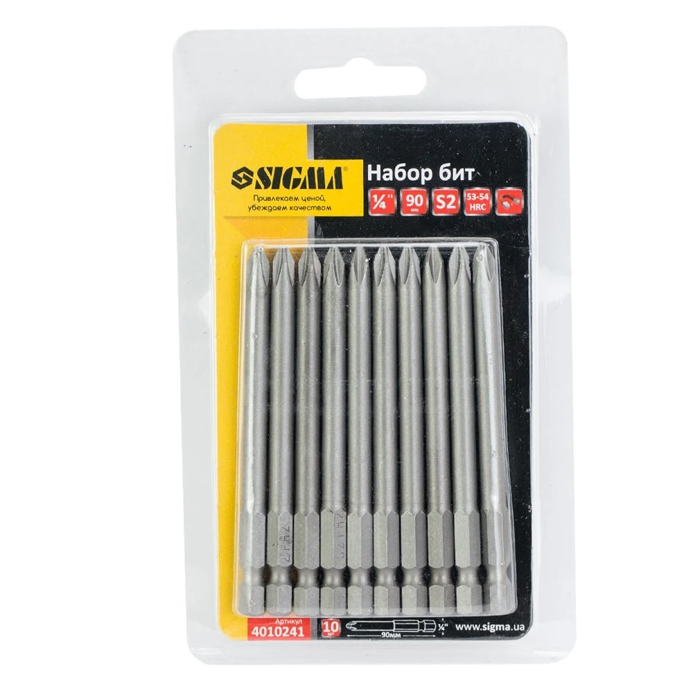 Набір біт PН2×90мм 1/4" 10шт S2 (блістер) SIGMA (4010241) призначений для використання в ручному, механізованому та електроінструменті під тип шліців PH.