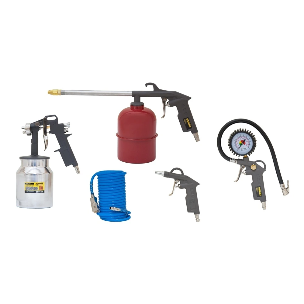 Комплектація: змінний шланг, Краскопульт HP, пістолет для нефтеванія, пістолет для підкачки шин, продувний пістолет