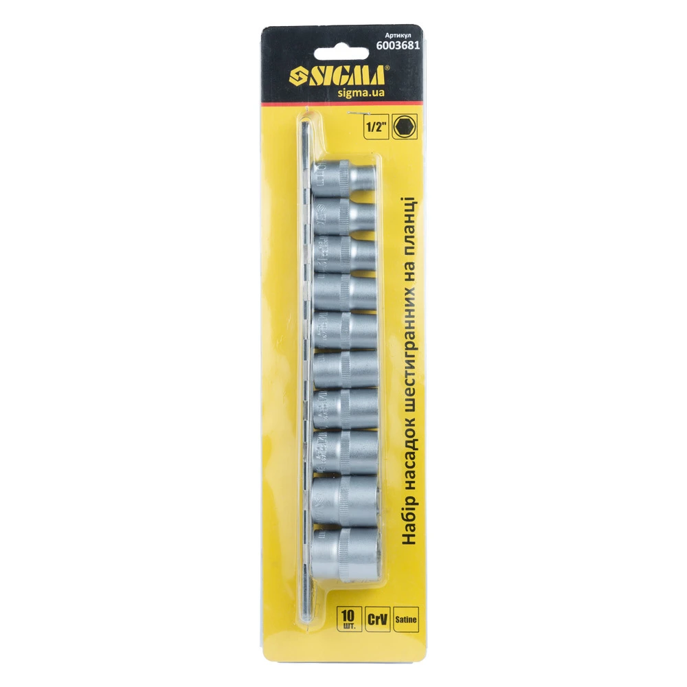 Набір насадок шестигранних 1/2" на планці 10шт CrV SIGMA (6003681) використовується для роботи з різьбовими з'єднаннями.
