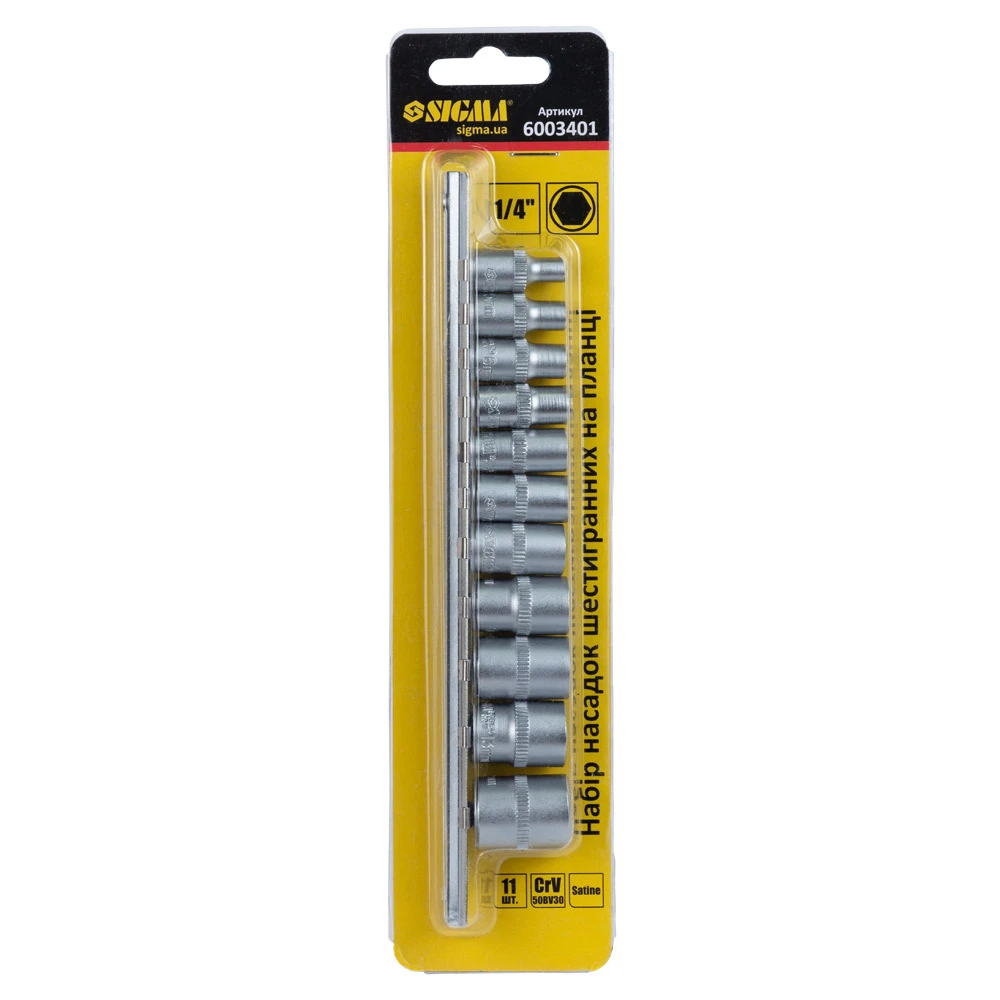 Набір насадок шестигранних 1/4" на планці 11шт CrV SIGMA (6003401) використовується для роботи з різьбовими з'єднаннями.