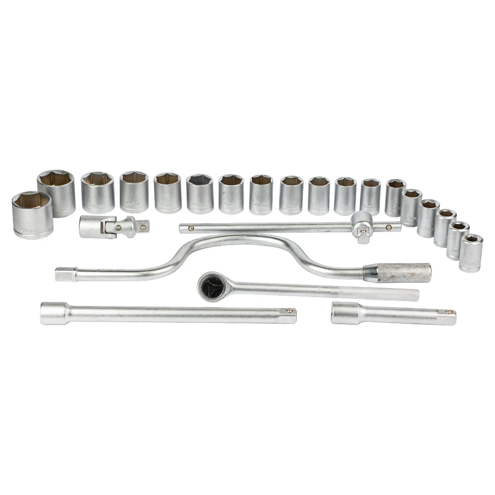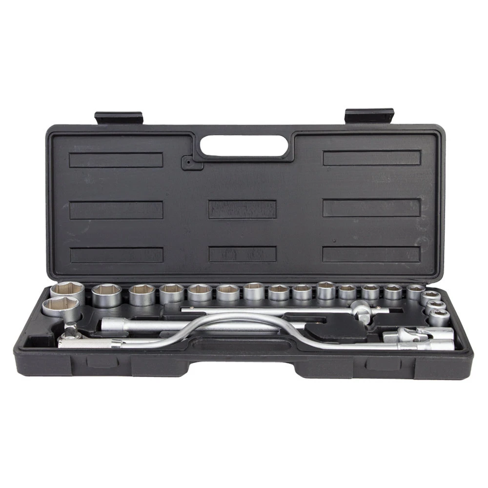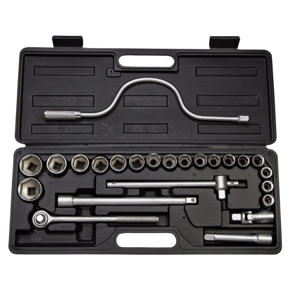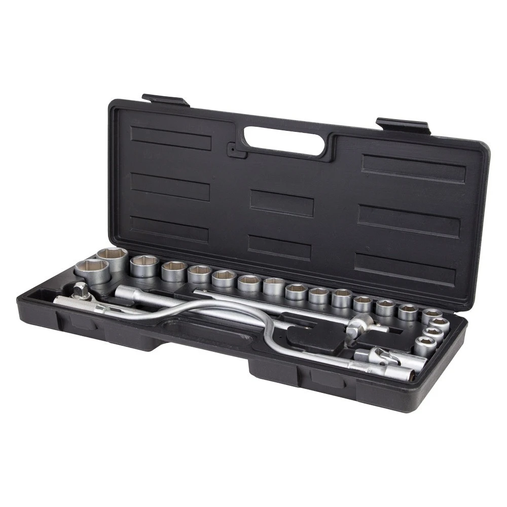 Набір насадок торцевих 1/2" + аксесуари 24шт GRAD (6003075) призначений для роботи з різьбовими з'єднаннями при ремонті і обслуговуванні автомобілів. Інструменти виготовлені з хромванадієва стали. Поставляються в компактному пластмасовому кейсі.
