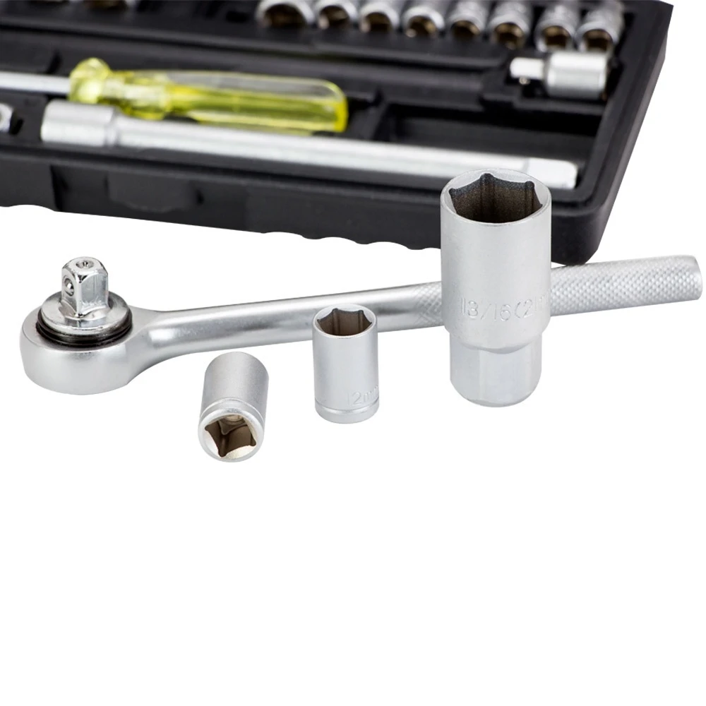 Набір насадок торцевих 1/4", 3/8" в кейсі 20шт GRAD (6003055) призначений для роботи з різьбовими з'єднаннями при ремонті і обслуговуванні автомобілів. Інструменти виготовлені з хромванадієва стали. Поставляються в компактному пластмасовому кейсі.