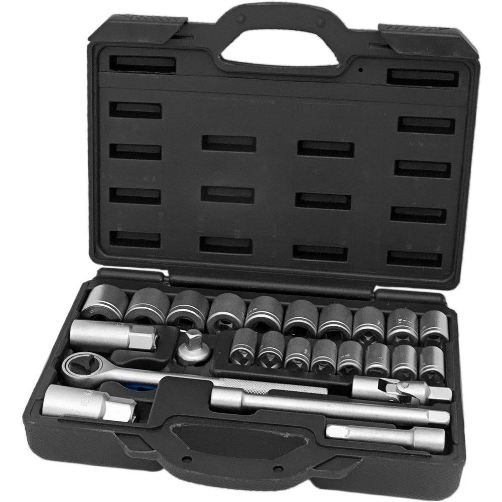 Набір насадок торцевих 3/8" в кейсі 25шт GRAD (6003085) призначений для роботи з різьбовими з'єднаннями при ремонті і обслуговуванні автомобілів. Інструменти виготовлені з вуглецевої сталі і мають антикорозійне покриття. Поставляються в компактному пластмасовому футлярі.
