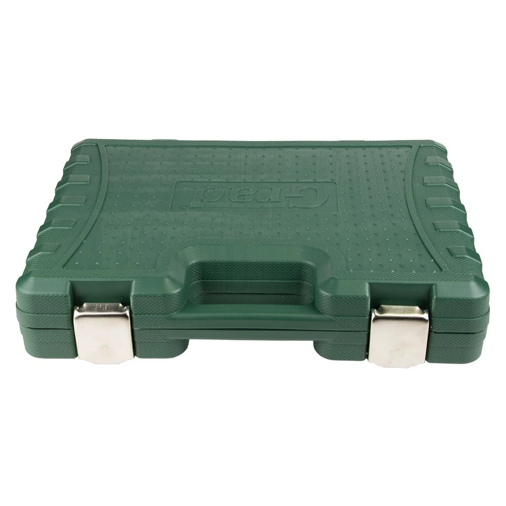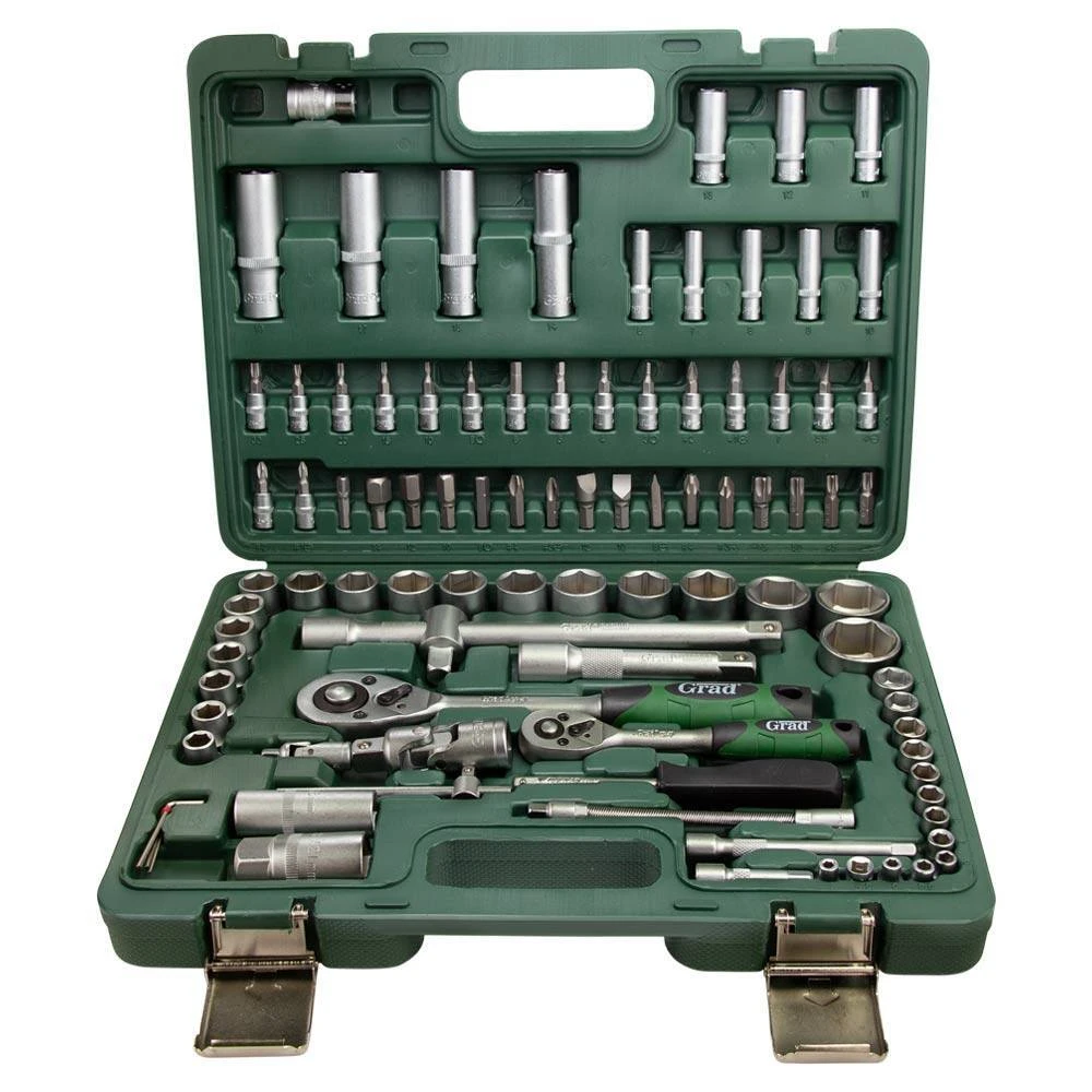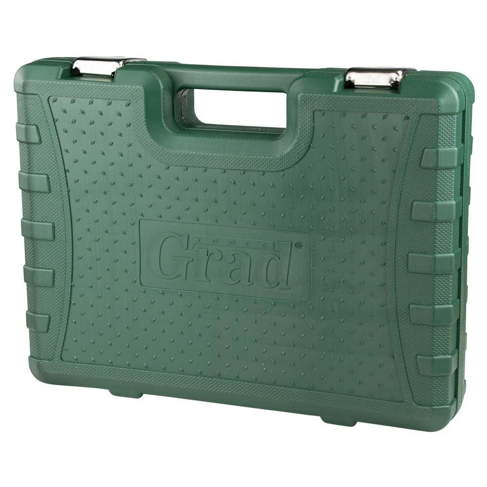Набори GRAD - лінійка для побутового використання. Набори підходять як для виконання нескладного автомобільного ремонту, так і для побутового застосування. Інструменти виготовлені з міцної інструментальної сталі і мають тришарове покриття (Nickel X2 + Chrome). Для комфортного зберігання та транспортування, набори поставляються в кейсі, який виготовлений з міцного АБС-пластику з металевими замками.