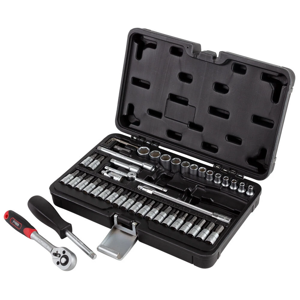 Універсальні комплектації наборів дозволяють виконувати різні роботи з ремонту та обслуговування автомобіля. Найпопулярніші види та розміри біт допоможуть відкрутити будь-які типи кріплень, а подовжувачі (звичайні та гнучкі), кардани та перехідники допоможуть у вирішенні проблеми з доступом до найвіддаленіших куточків автомобіля.