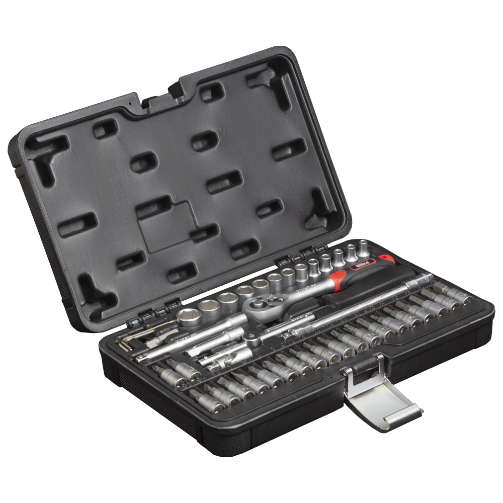 Усі елементи виготовлені з високоякісної хромованадієвої сталі CrV 50BV30. Відмінною рисою даної марки сталі є велика кількість легуючих добавок, завдяки чому матеріал стає менш схильним до крихкого руйнування та збільшує надійність при експлуатації. Тришарове хромонікелеве покриття збільшує термін служби інструменту та запобігає корозії. Комплект містить оптимальний набір пристосувань для виконання різних видів робіт у майстерні, на автосервісі, гаражі або СТО, а також для різноманітних побутових потреб.