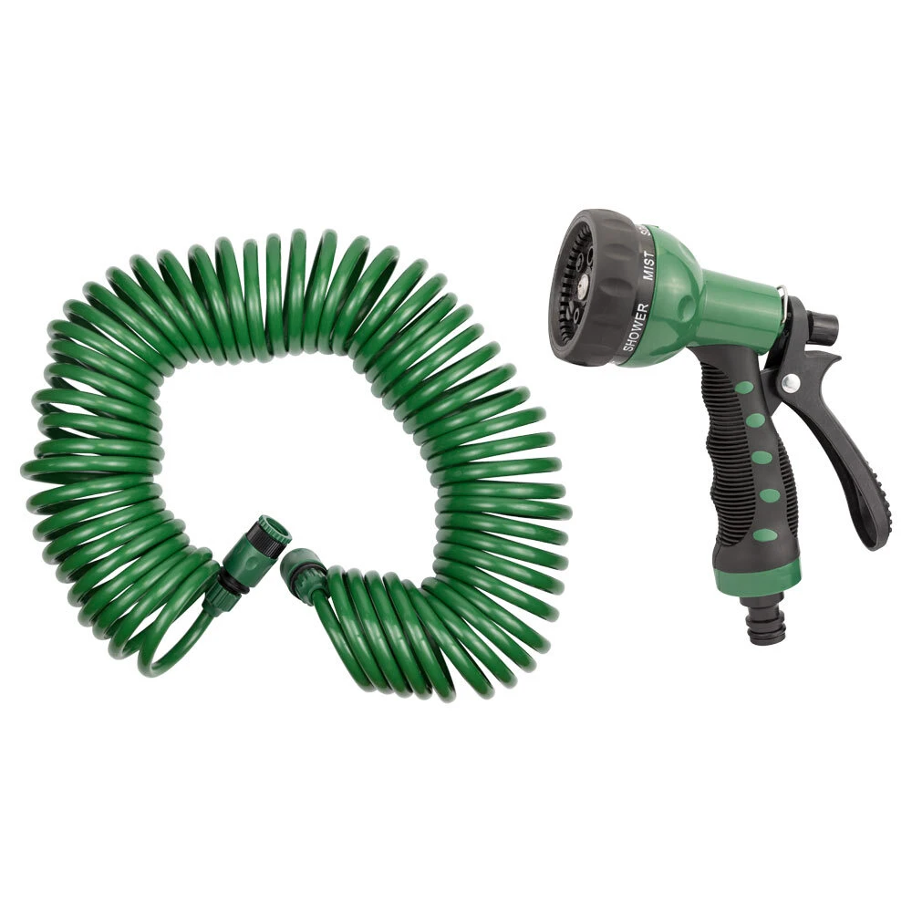 Набір поливальний: шланг спіральний 15м + пістолет-розпилювач 7-ми режимний GRAD (5019075) призначений для спрямованого поливу присадибних ділянок, городів, клумб, газонів і т.д. Сумісний з усіма елементами поливальної системи і може комбінуватися з необхідними пристроями і насадками за бажанням користувача.