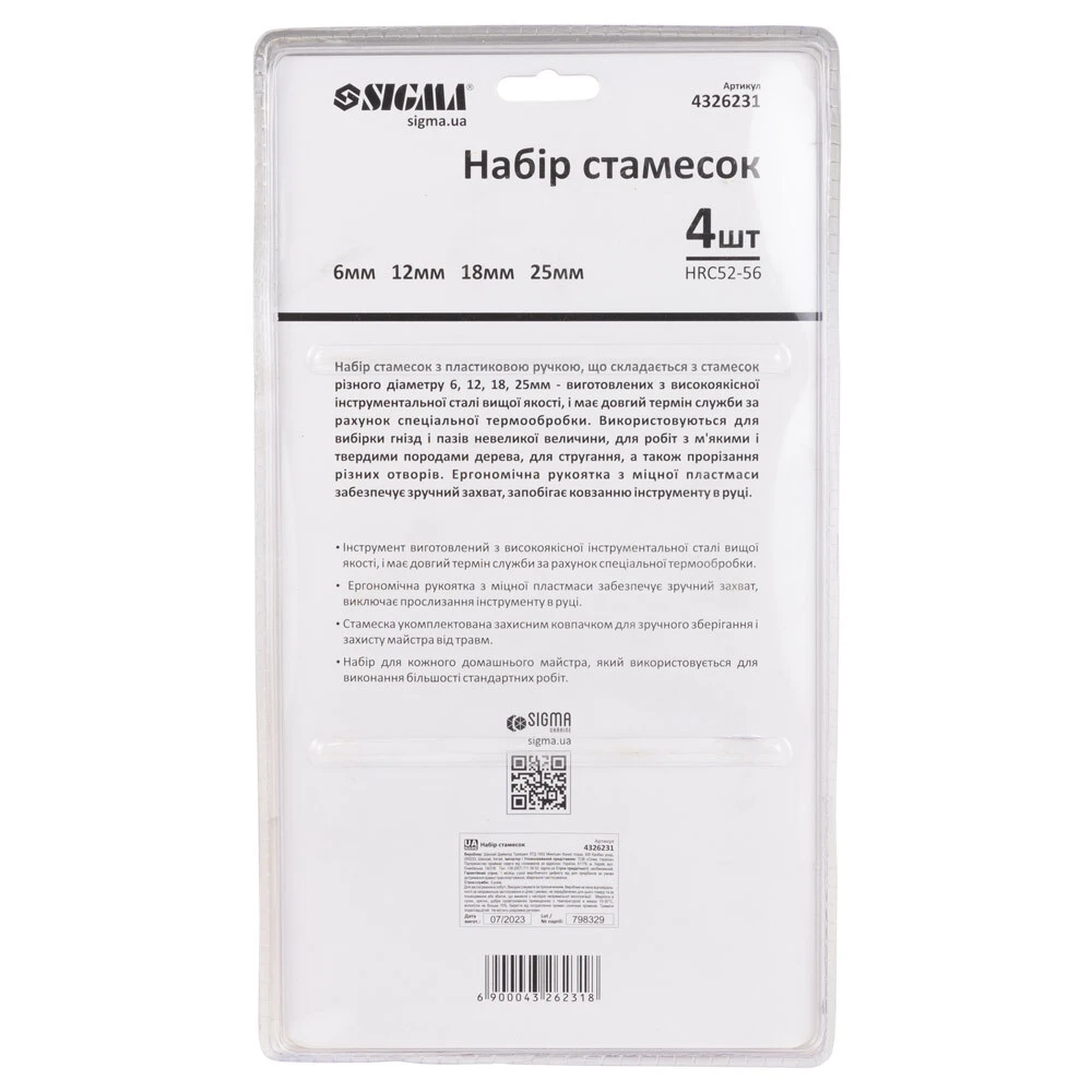 Набір стамесок 4 шт (6, 12, 18, 25мм) пластикова ручка SIGMA (4326231)