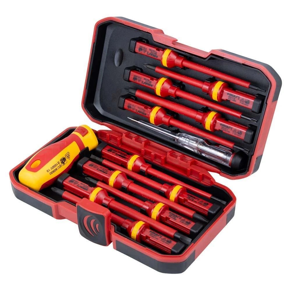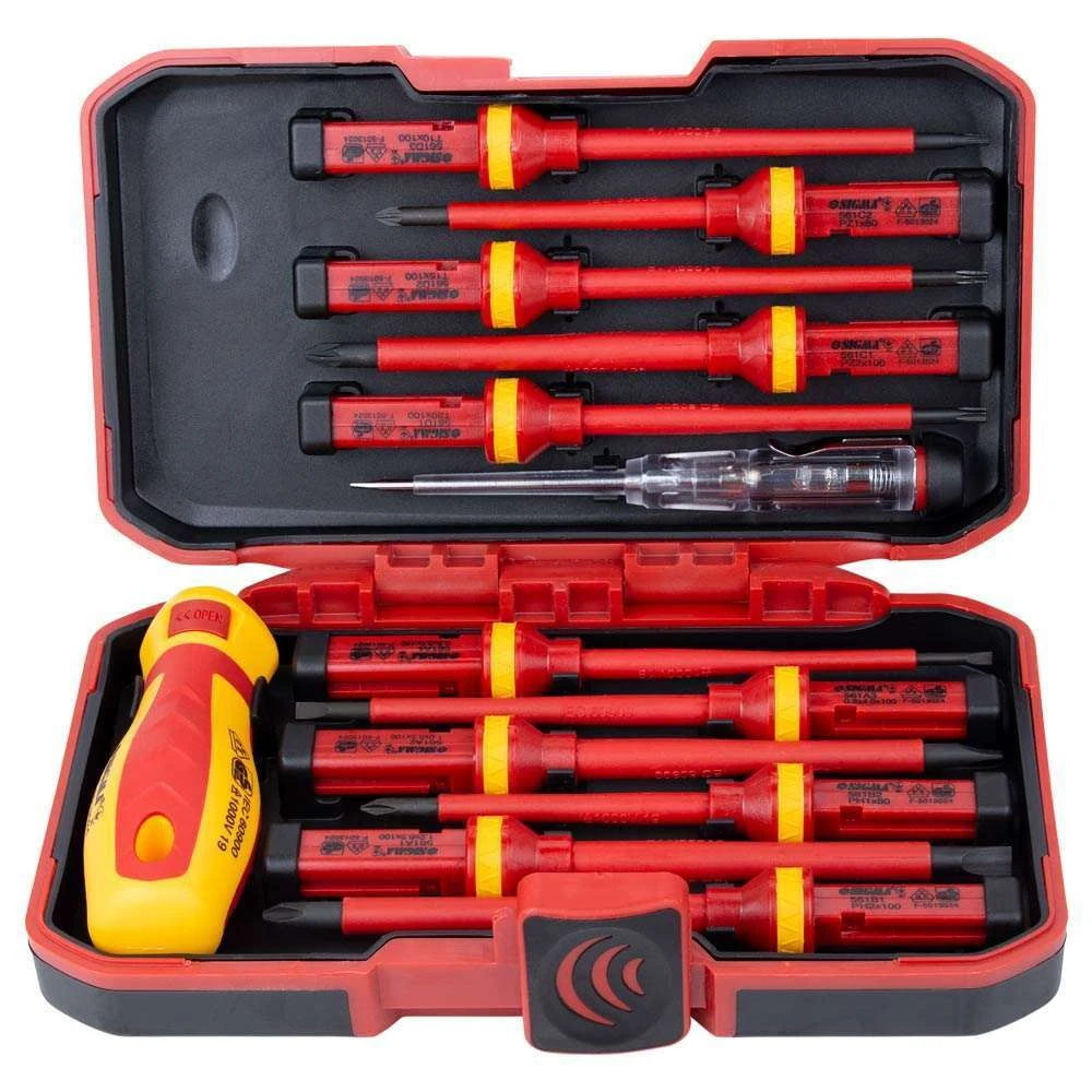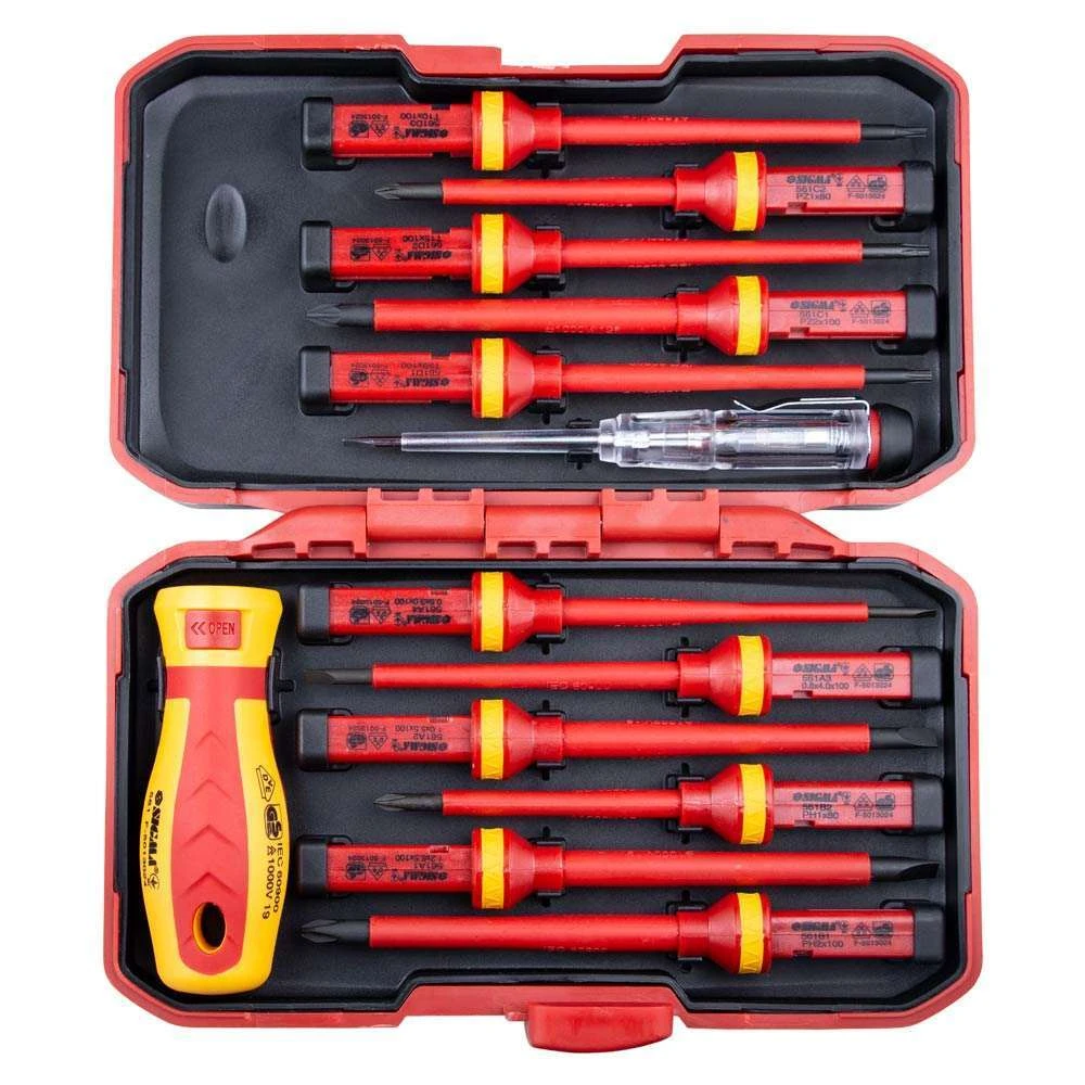 Набір викруток діелектричних 11шт + викрутка-індикатор 250В CrV (пласт кейс) SIGMA (4008411) - для виконання електромонтажних робіт під напругою до 1000В. Робочі поверхні загартовані. Змінні стержні. Ергономічна двокомпонентна протиковзка рукоятка забезпечує додаток високого крутного моменту. Високоточний наконечник забезпечує надійну посадку в кріпленні.
