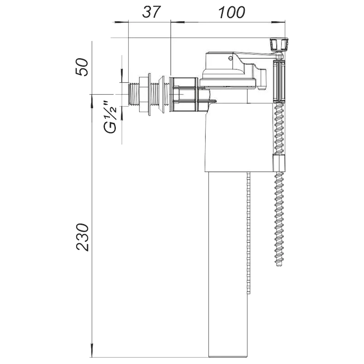 Наповнююча арматура з боковою подачею води, G½ʺ, 137х66х280мм