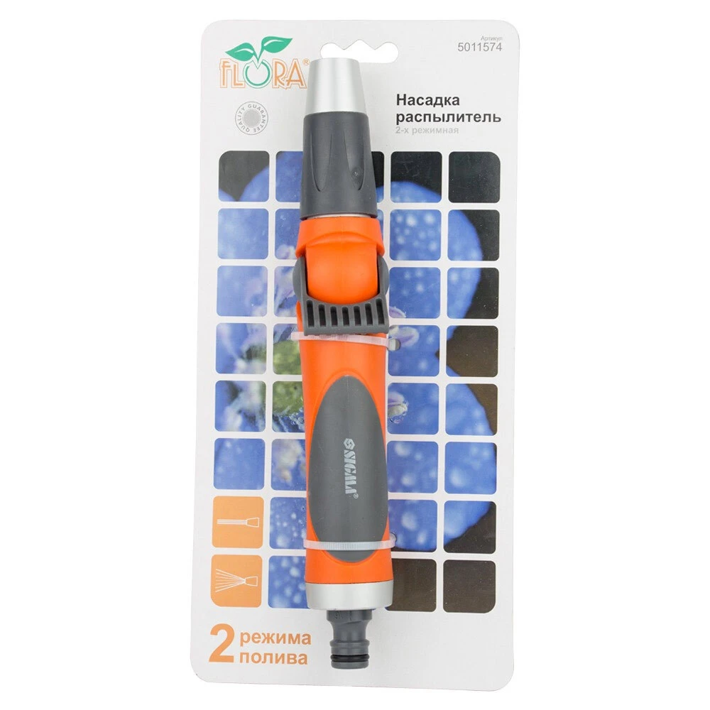 Насадка-розпилювач 2-х режимний (AL+TPR) FLORA (5011574) призначена як насадка на поливальний шланг через швидкознімний коннектор. Дозволяє регулювати напрямок і ширину вихідного струменя під час поливу. Можливе застосування для чищення садових інструментів, обладнання та меблів.