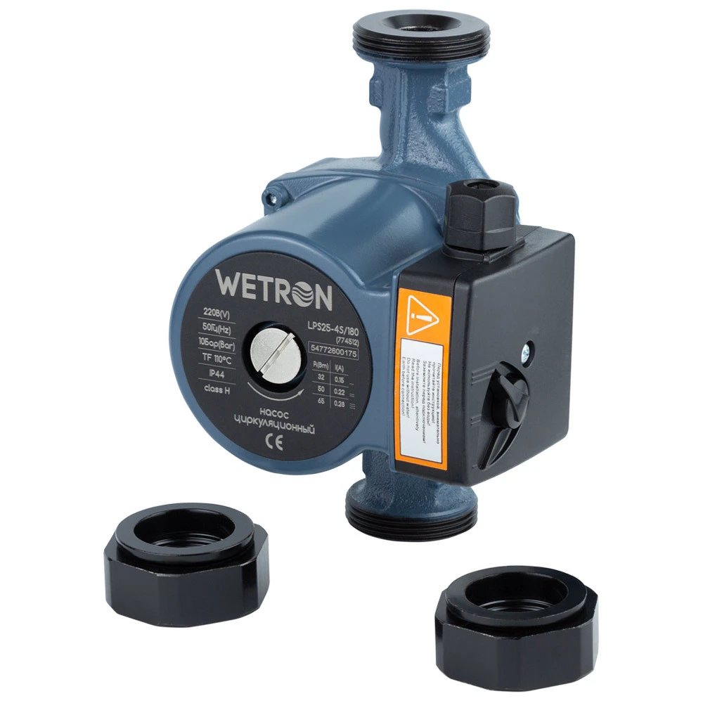 Насос циркуляційний 65Вт Hmax 4м Qmax 63л/хв Ø1 1/2" 180мм + гайки Ø1" WETRON (774512)