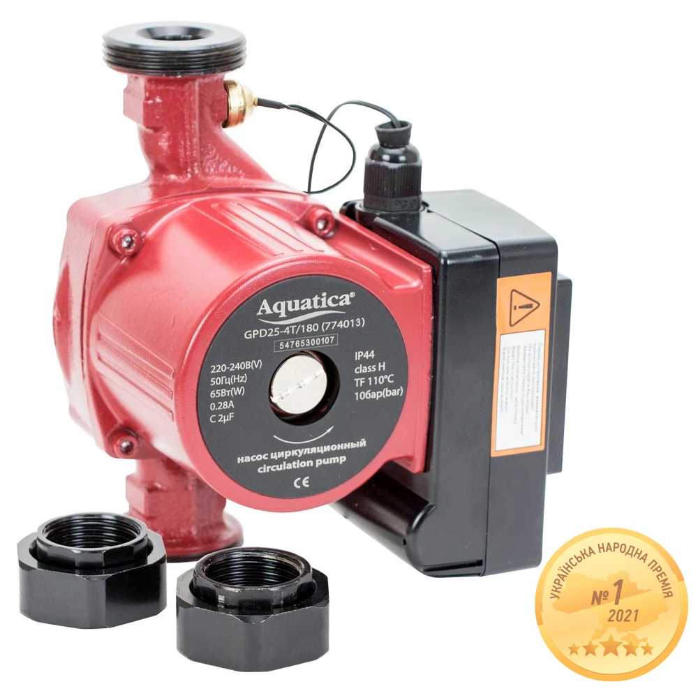 Насос циркуляційний з термодатчиком 65Вт Hmax 4м Qmax 63л/хв Ø1½" 130мм+гайки Ø1" AQUATICA (774013)