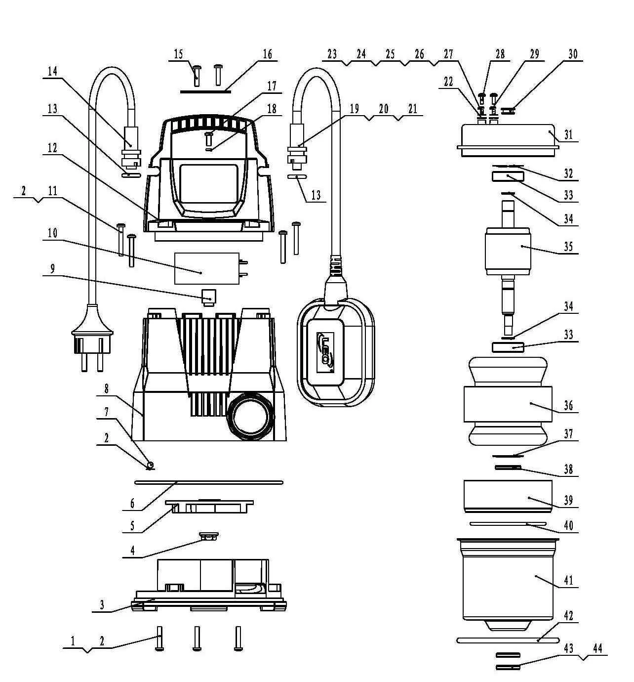 Поплавцевий вимикач забезпечує автоматичне увімкнення та вимкнення насосів цієї серії залежно від рівня води