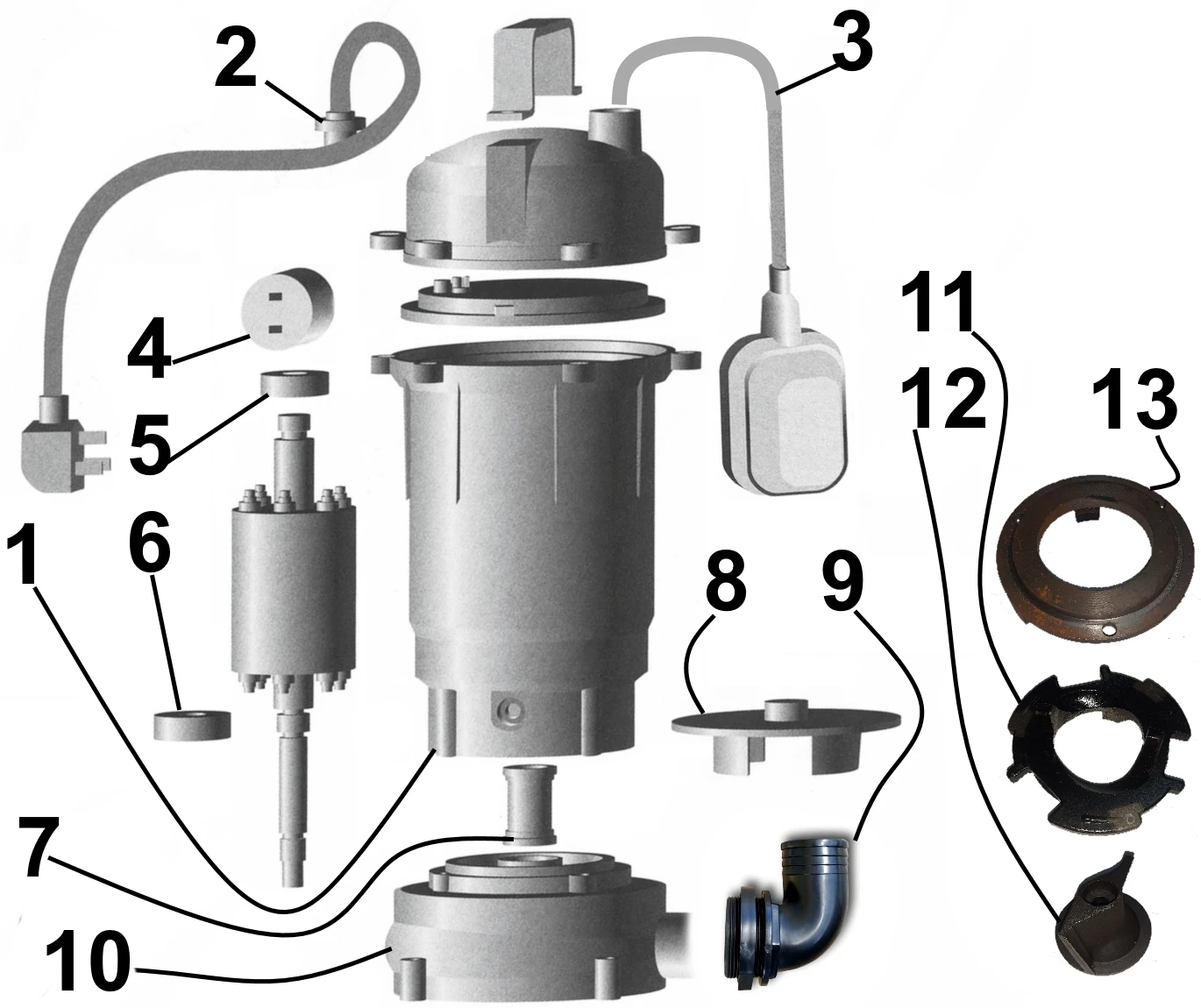Корпус насосної частини і робоче колесо виготовлено з чавуну. Надійність елементів ущільнювачів фекального насоса повністю ізолює електродвигун від контакту з рідиною, що перекачується і захищає від надлишкових тепла і вологи. Наявність таких особливостей, як подвійне торцеве ущільнення валу в маслозаповненій камері і маслозаповнений двигун, гарантують охолодження насоса навіть у разі його занурення в рідину менш ніж на половину. Робоче колесо з ріжучим механізмом дозволяє подрібнювати різноманітні відходи, які транспортуються зі стічними водами- шматки тканини, шнури і ін. Також насос обладнаний поплавковим вимикачем, що забезпечує роботу насоса в автоматичному режимі. Напруга мережі: 230V - 50Hz. Термозахисне реле вбудоване у виносний блок