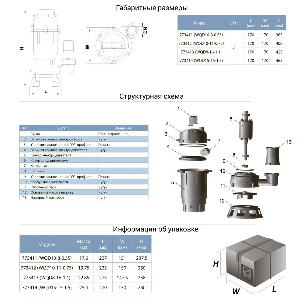 - Корпус насоса: чавун