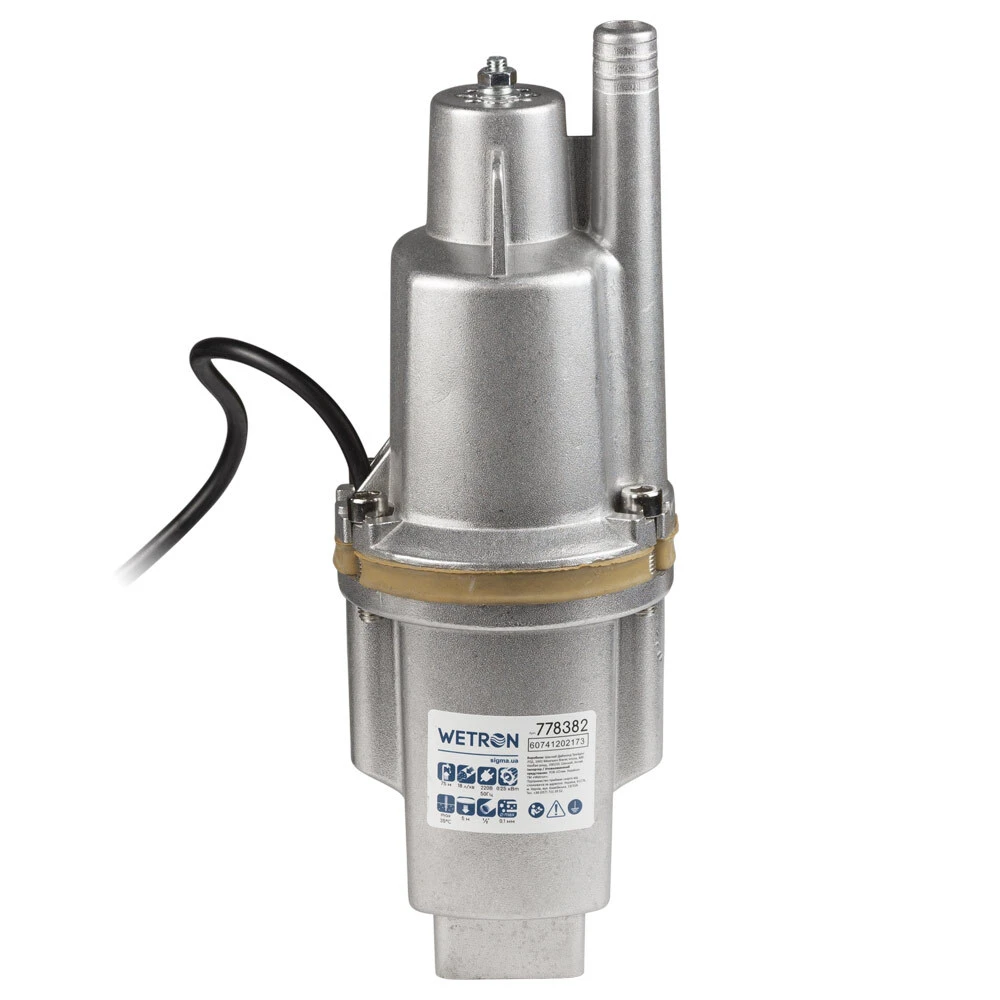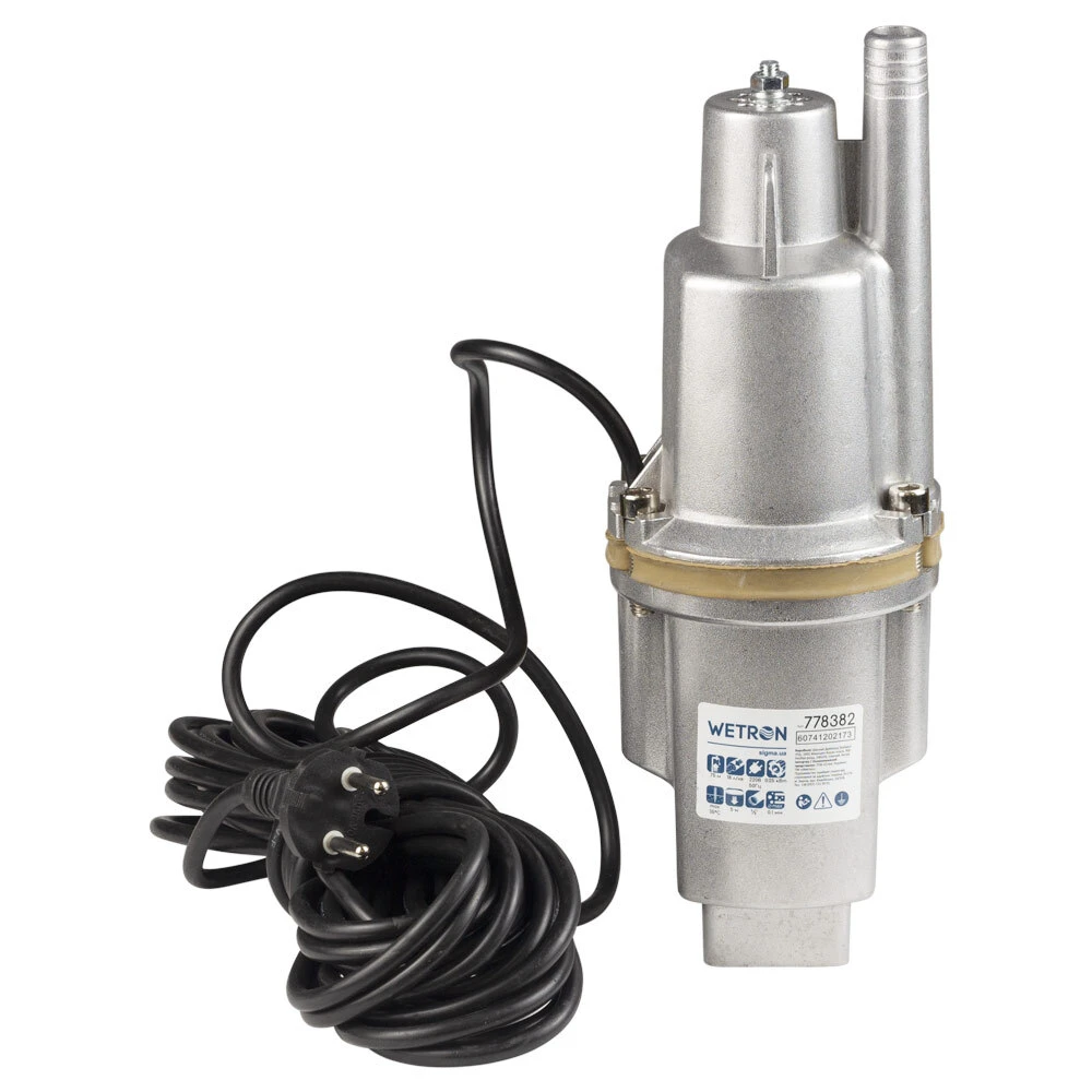 Насос вібраційний 0.25кВт H 75м Q 18л/хв Ø100мм 10м кабелю верхній вхід WETRON WVM60 (778382)
