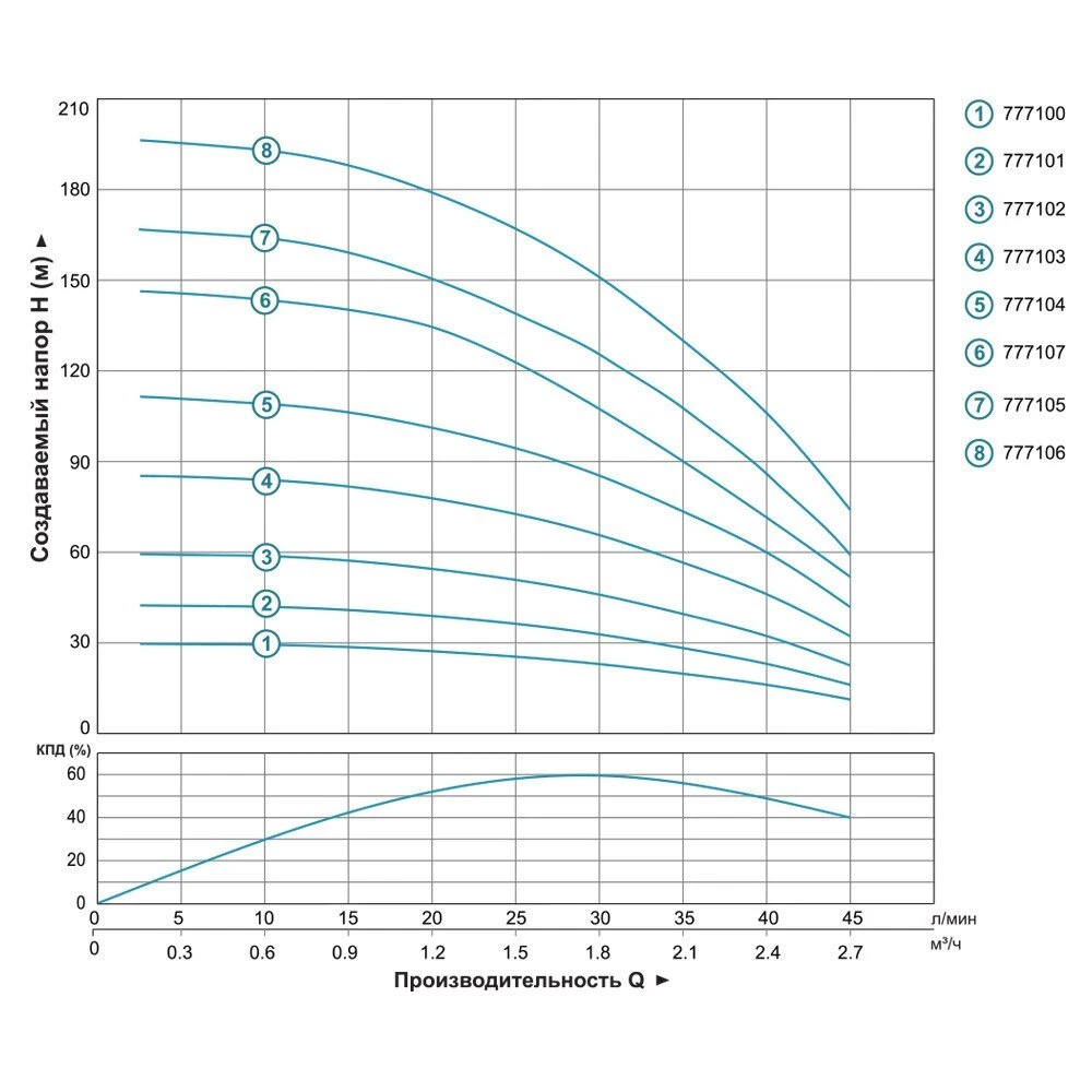 - Робоче колесо: технополімер;