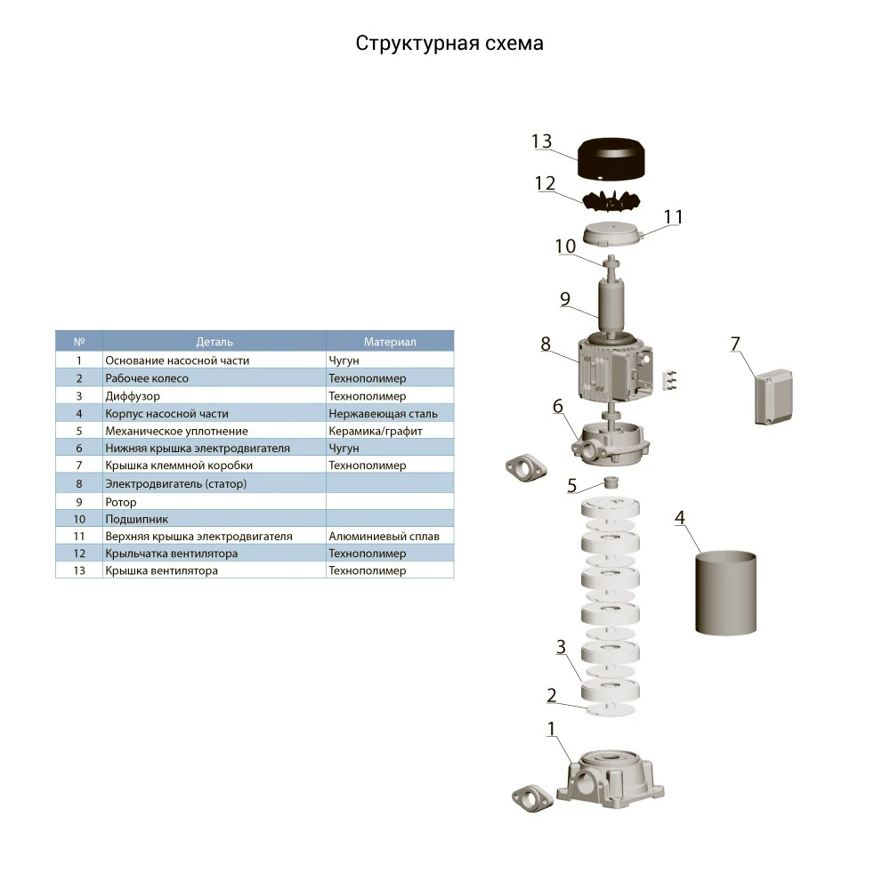 - Корпус: нержавіюча сталь AISI 304 / чавун з антикорозійною обробкою;