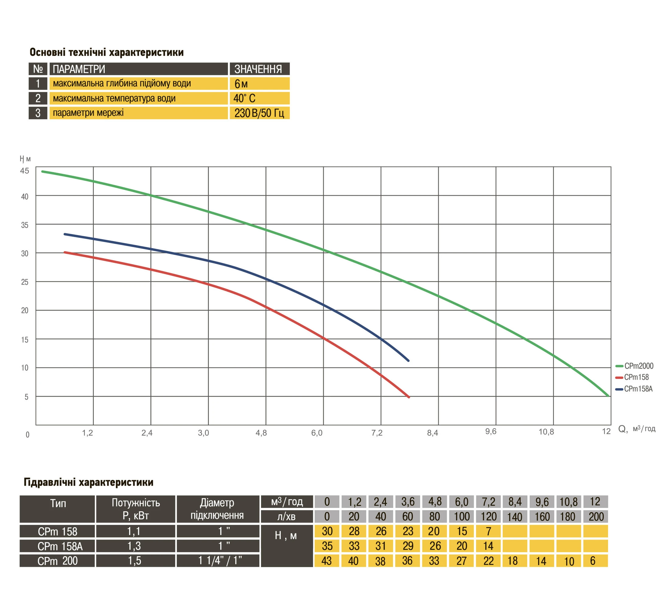 • максимальна висота напору -43 м