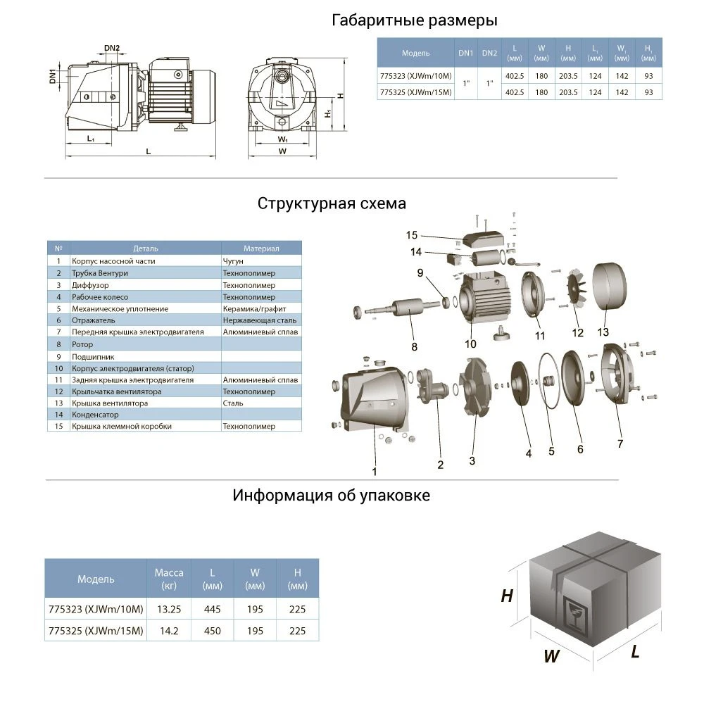Насос відцентровий самовсмоктуючий 0.75кВт Hmax 46м Qmax 90л/хв LEO XJWm/10M (775323)