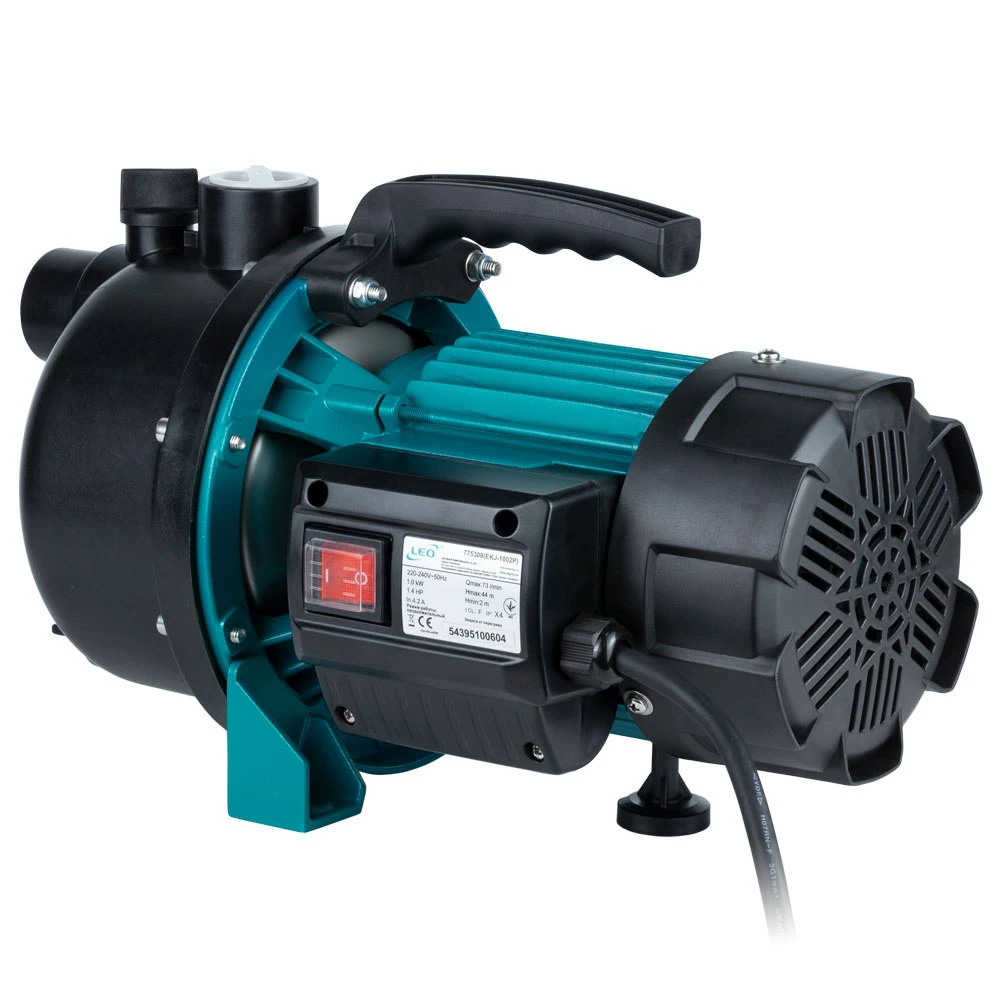 Насос відцентровий самовсмоктуючий 1.0кВт Hmax 44м Qmax 73л/хв пластик LEO EKJ-1002P (775308)