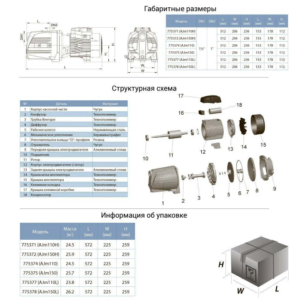Насос відцентровий самовсмоктуючий 1.5кВт Hmax 72м Qmax 60л/хв LEO 3.0 AJm150H (775372)