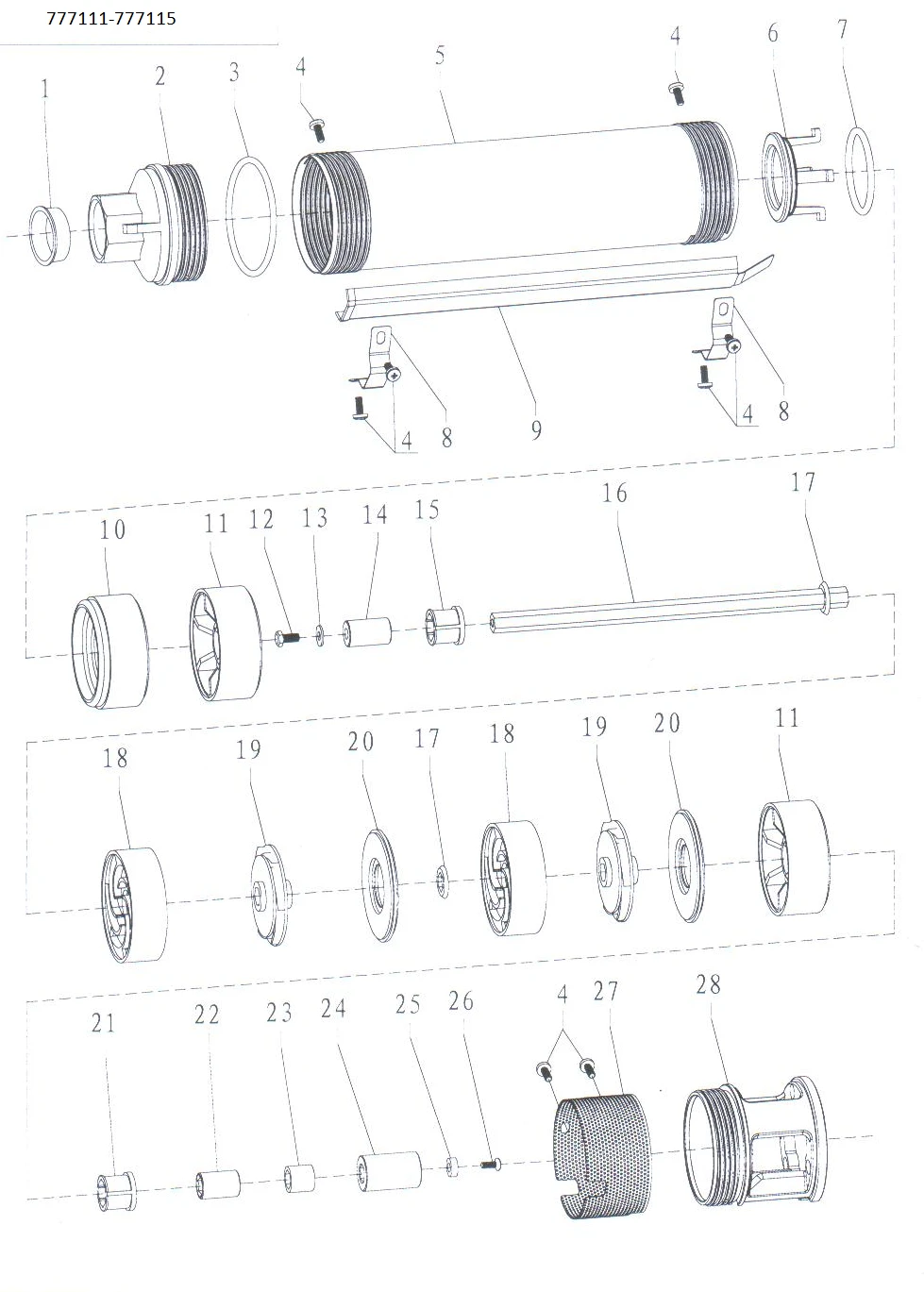 - Вал насосної частини: нержавіюча сталь AISI 304;