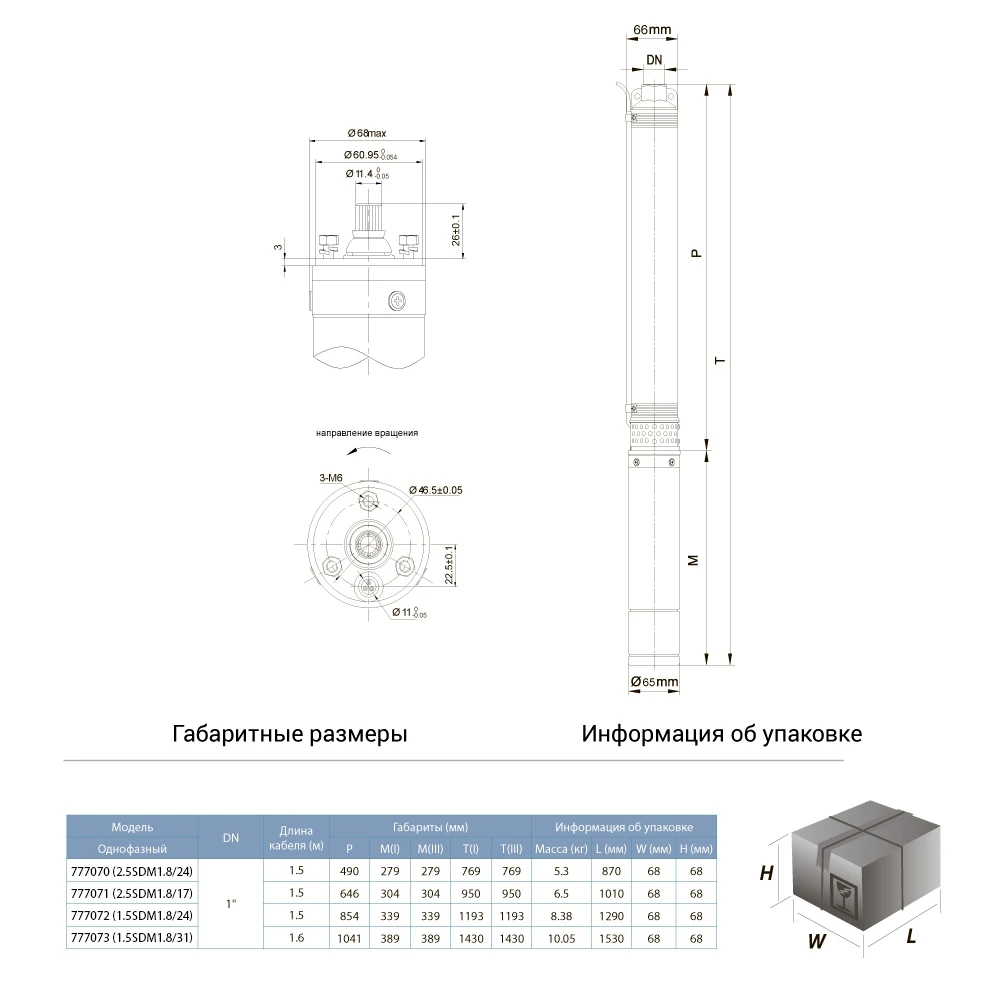 - Тип двигуна: асинхронний, маслонаповнений, з вбудованою в обмотку термозахистом