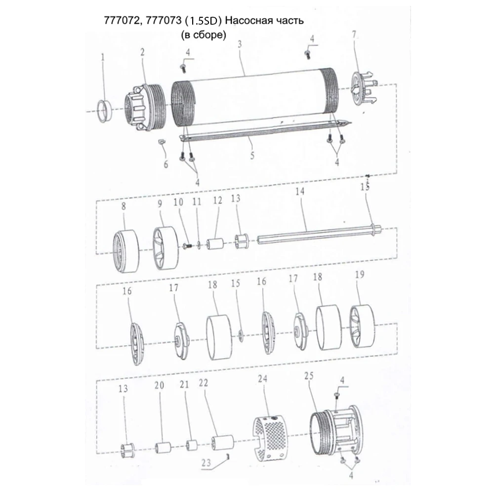 Вал насосної частини: нержавіюча сталь AISI 304