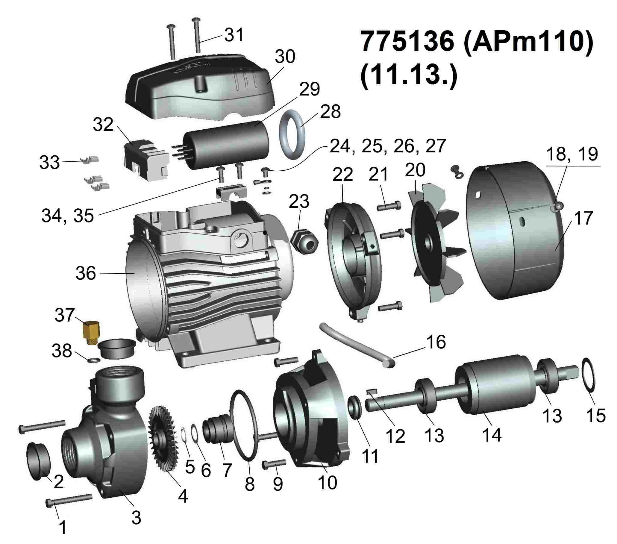 - Пластина зі сплаву на основі міді для запобігання заклинювання робочого колеса;