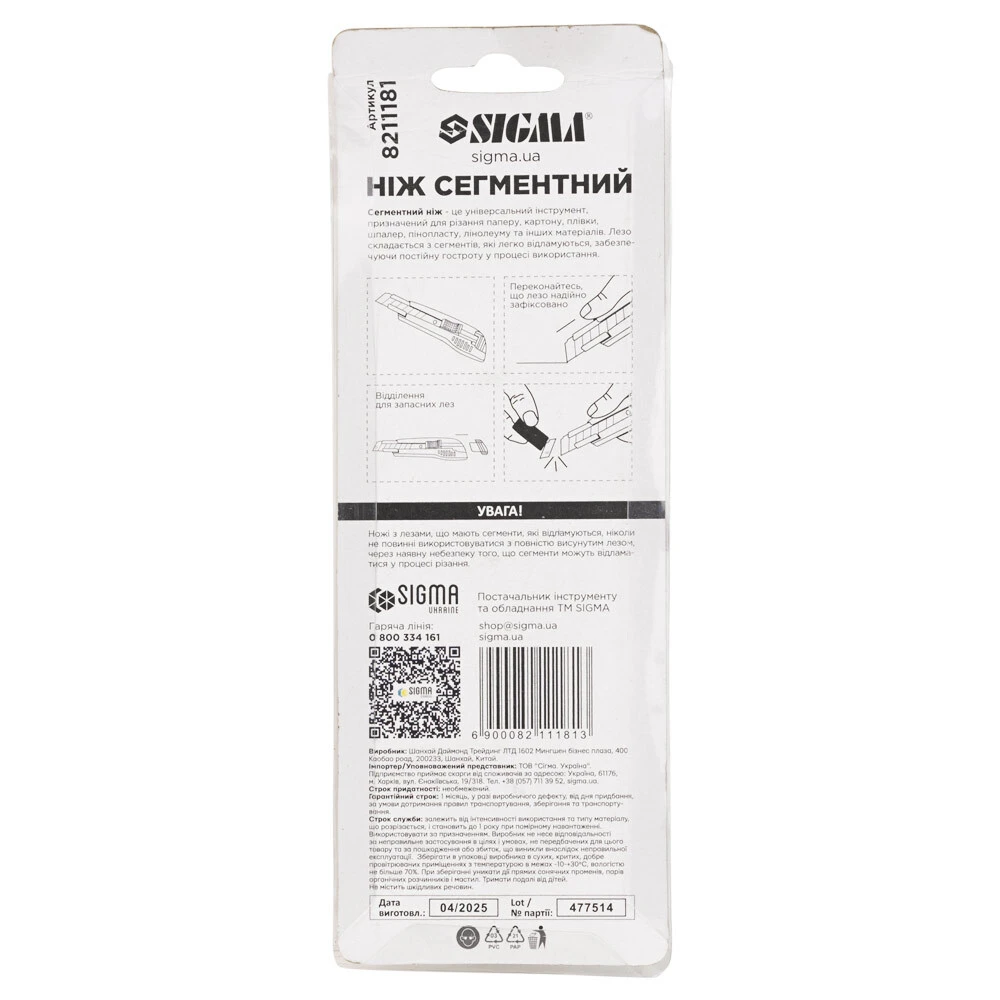 Ніж сегментний лезо 18мм корпус пластиковий автоматичний замок SIGMA (8211181)
