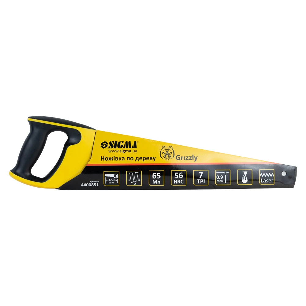 Ножівка по дереву 450мм 7TPI Grizzly SIGMA (4400851) призначена для поздовжнього і поперечного розпилу заготовок середніх і дрібних розмірів деревини з м'яких і твердих порід, ДСП, фанери і ПВХ.