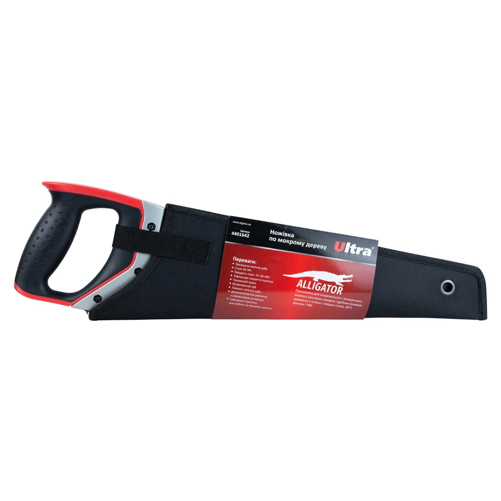 Ножівка по мокрому дереву з тефлоновим покриттям 400мм 7TPI Aligator + чохол ULTRA (4401642) призначена для поздовжнього і поперечного розпилу заготовок середніх і дрібних розмірів деревини з м’яких і твердих порід, ДСП, фанери та ПВХ.