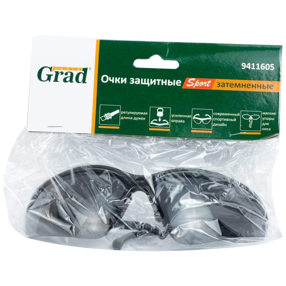 Окуляри захисні Sport (затемнені) GRAD (9411605) призначені для захисту органів зору при різних роботах (слюсарні та ремонтні роботи, обробка каменю, будівництво, робота на верстатах, хімічна промисловість, машинобудування, сільське господарство)