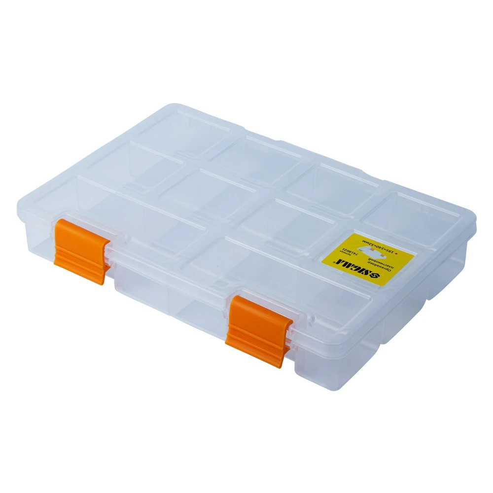 Органайзер пластиковий (прозорий) 195×140×32мм SIGMA (7418021) призначений для зберігання, транспортування, перенесення і зручного доступу до дрібного інструменту. Допомагають системно організувати зберігання дрібних деталей: кріплення, шайб, гайок та інших дрібниць. Простота в пошуку необхідних деталей забезпечується наявністю декількох секцій. Функціональний і знаходить застосування в багатьох сферах діяльності: перенесення індивідуальних інструментів, комплектація наборів інструментів і дрібних деталей для домашнього майстра, забезпечення працівників комунальних служб комплектом устаткування, укладання дрібних предметів на відпочинку, комплектації необхідного набору інструментів і аксесуарів для автомобіля і ін.