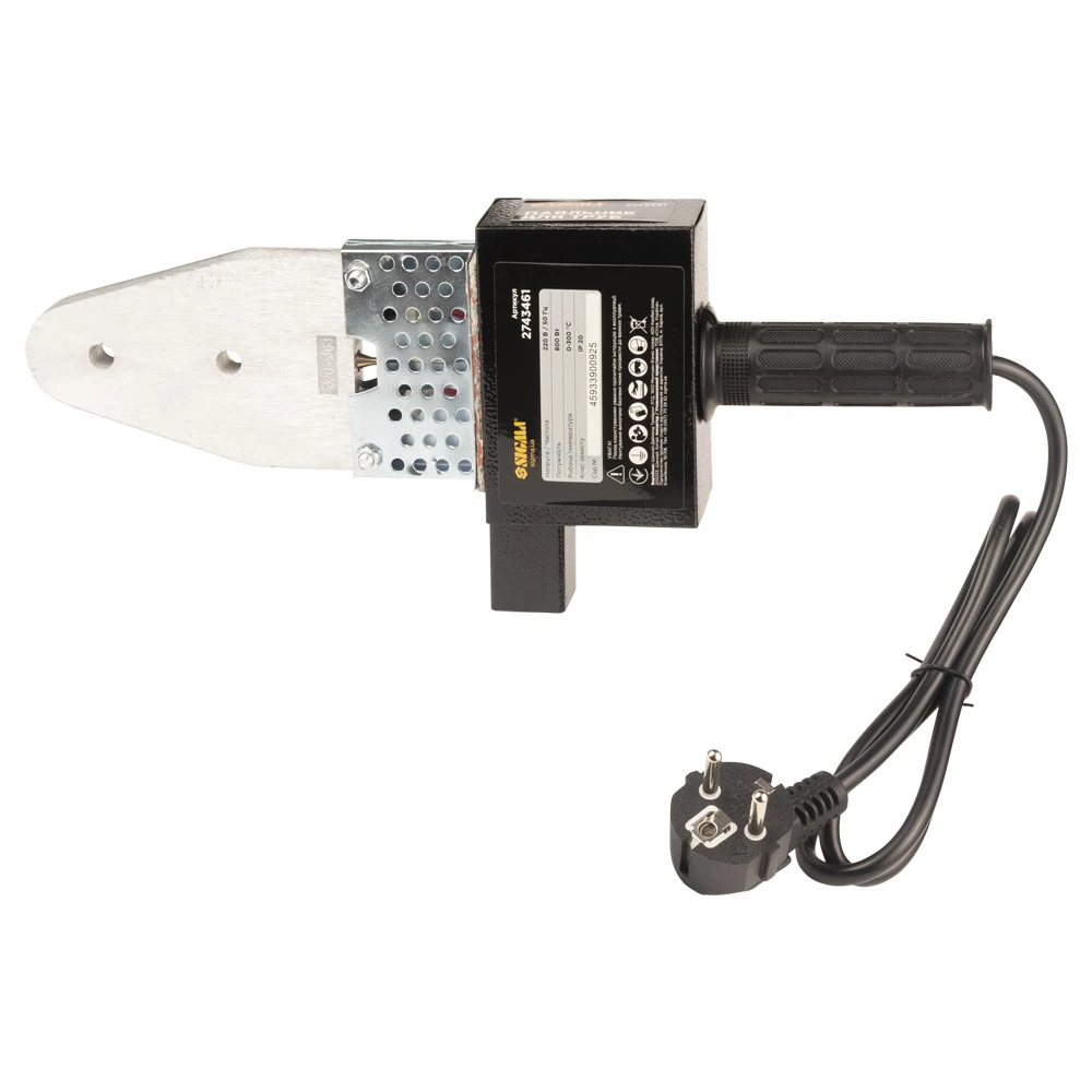 Паяльник призначений для зварювання пластикових труб діаметром від 20 мм до 63 мм, з потужністю 800Вт.