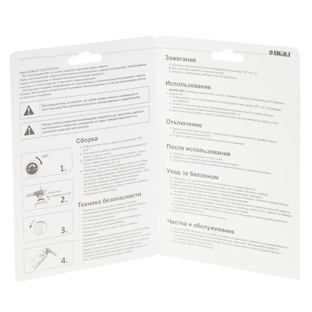 Пальник газовий з керамічним соплом і п'єзопідпалом SIGMA (2901421) застосовується в побутових, ремонтних, будівельних і туристичних цілях. Наприклад, при карамелізації цукру на десертах, поливання, додання кольору і текстури, підпалювання міцних напоїв. Також використовується для розпалювання дров і вугілля, відтавання труб, замків, підігріву автомобільних двигунів, випалу старої фарби, пайки мідних труб і виготовлення ювелірних виробів.
