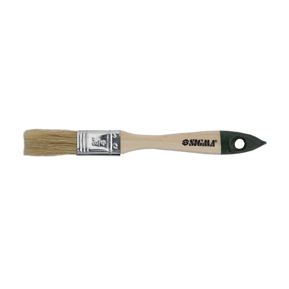 Пензель флейцевий стандарт 3/4" SIGMA (8301311) - натуральна щетина виварена і підстрижена, набирає в себе велику кількість матеріалу, що наноситься. Не схильна до негативного впливу агресивних речовин, що дозволяє використовувати її для роботи з усіма видами ЛФМ.