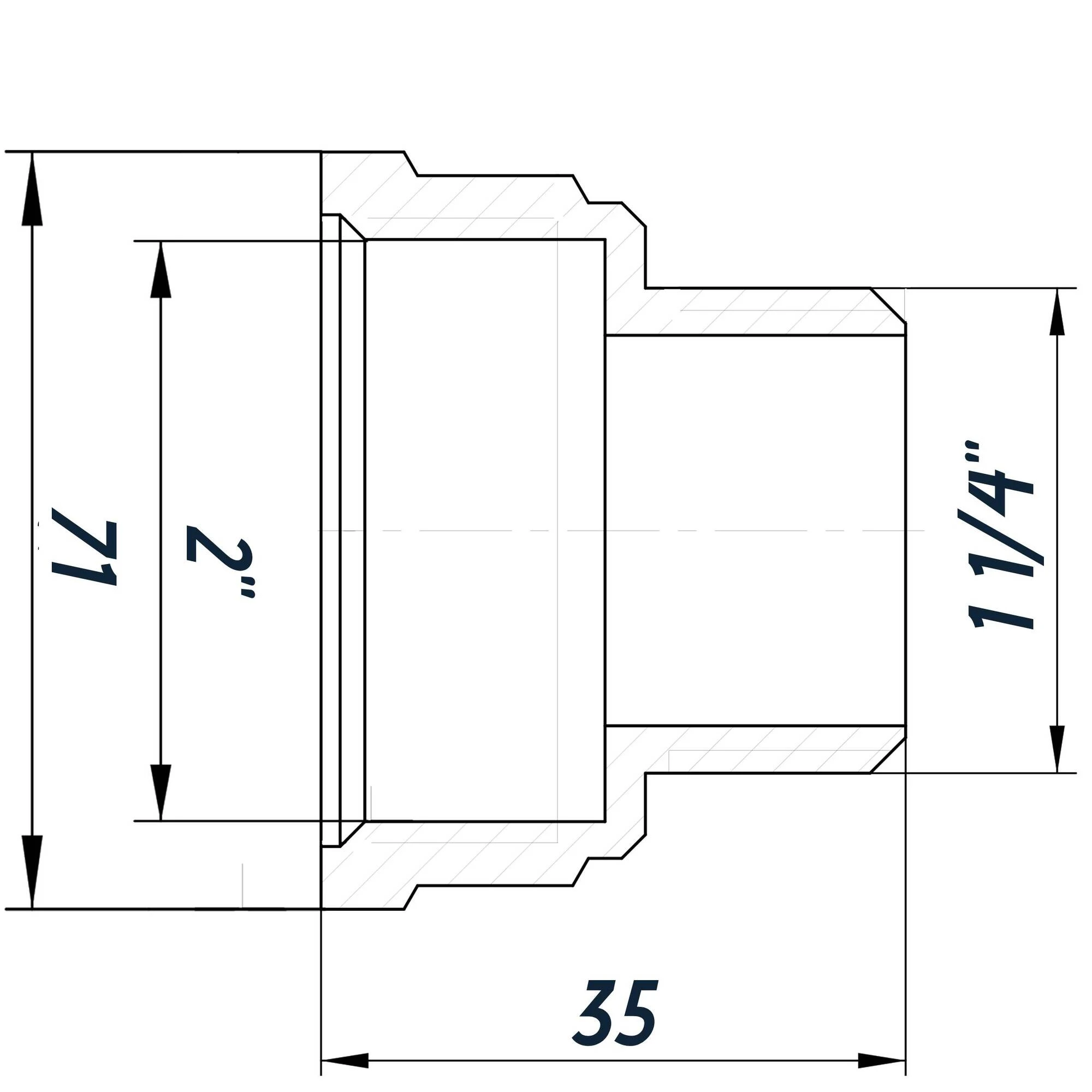 -З'єднання: 2″ Внутрішня різьба х 1 1/4″ Зовнішня різьба