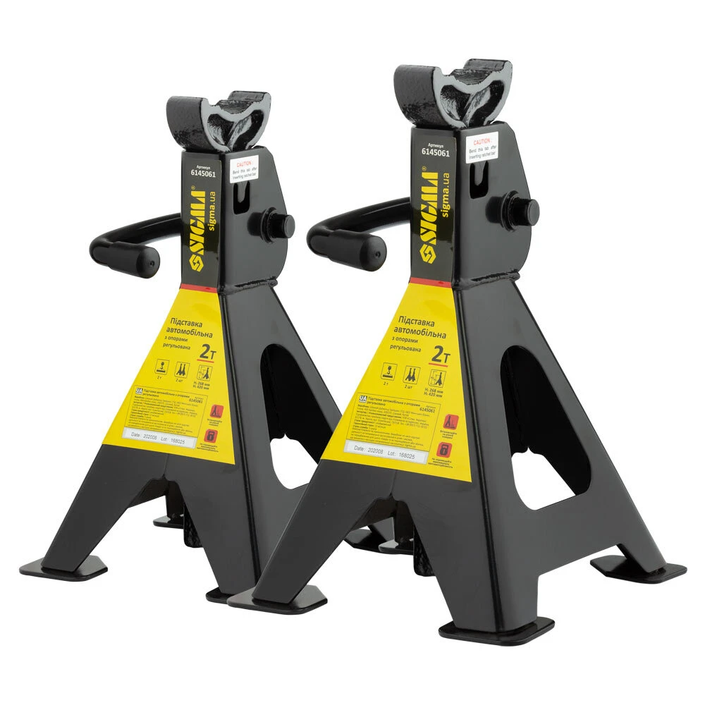 Підставка автомобільна з опорами регульована 2т (2шт) SIGMA (6145061) - професійний засіб надійної фіксації і страховки при підйомі автомобіля для проведення огляду та ремонтних робіт. Рекомендується використовувати з усіма типами домкратів.