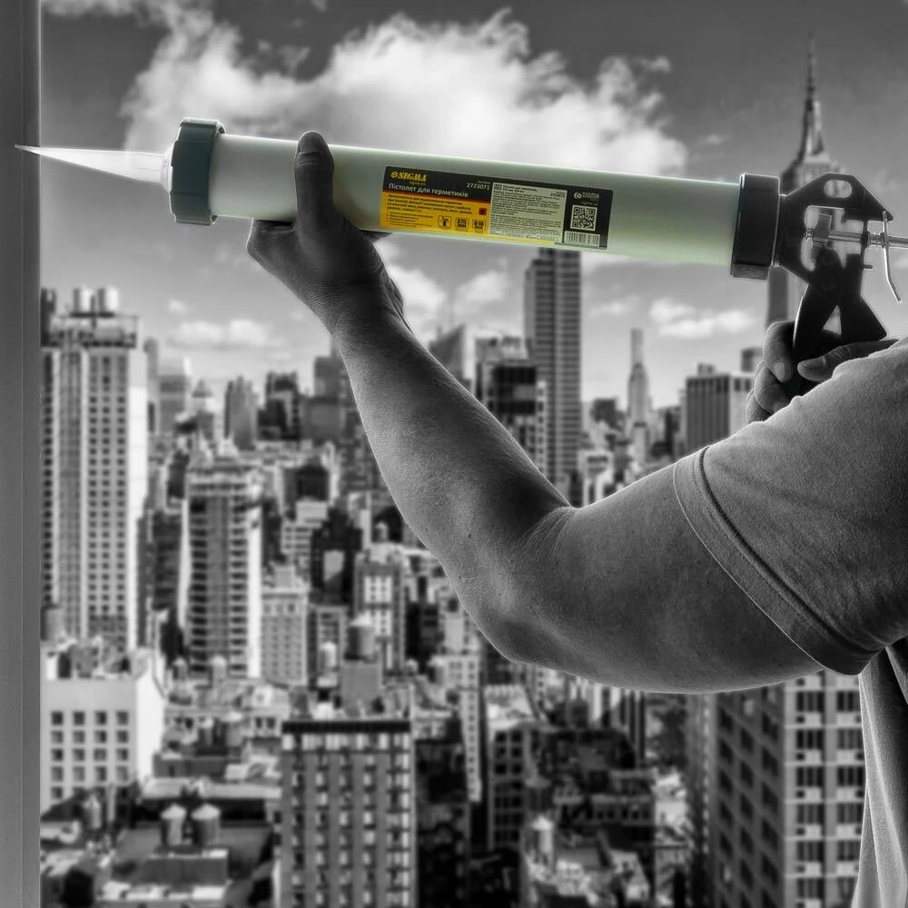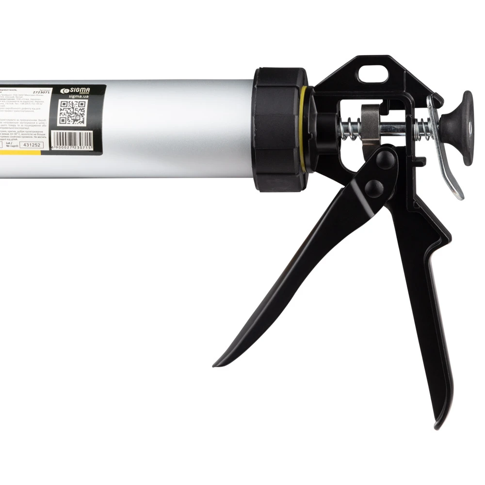 Пістолет для герметиків 375мм 610мл (алюмінієва туба) SIGMA (2723071) застосовується для видавлювання герметика при ізоляції, фіксації та заповнення пустот в роботах по монтажу ванн, раковин, плінтусів, вікон, дверей, дзеркал, плитки і т.д.