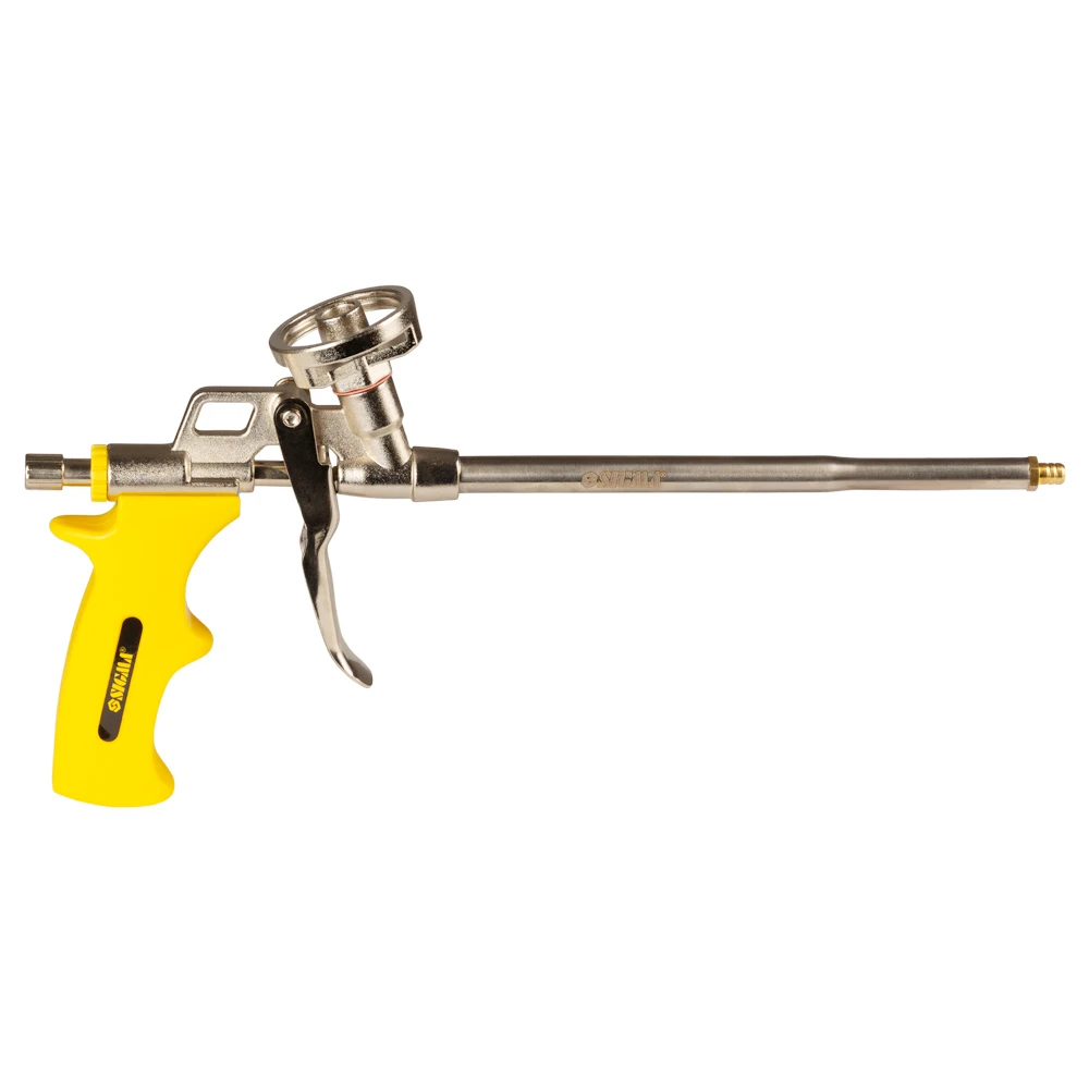 Призначений для робіт з монтажною піною. Використовується при монтажі вікон, дверей та інших будівельних конструкцій для заповнення пустот і надання герметичності. Конструкція пістолета має адаптер для підключення балона з піною, який розташований у верхній частині пістолета.