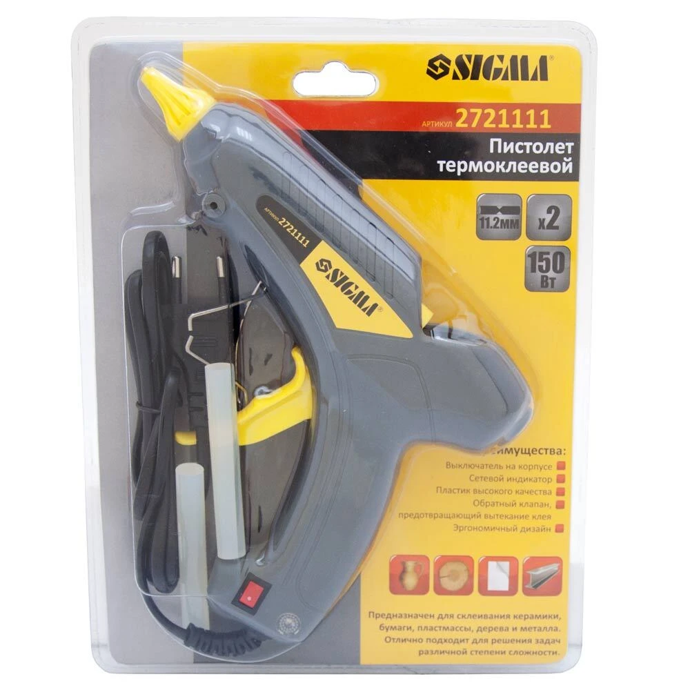 Пістолет термоклеевой Ø11.2мм 150(200)Вт SIGMA (2721111) відмінно підійде для склеювання широкого кола матеріалів, таких як, папір, картон, пластмаса, дерево і навіть металу і кераміки. Може застосовуватися в багатьох областях як побуту так і виробництва.