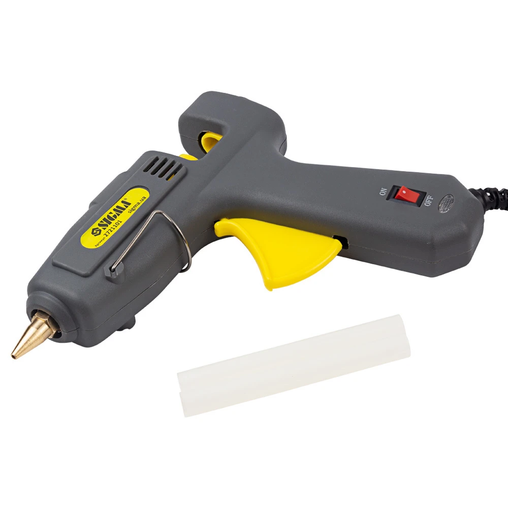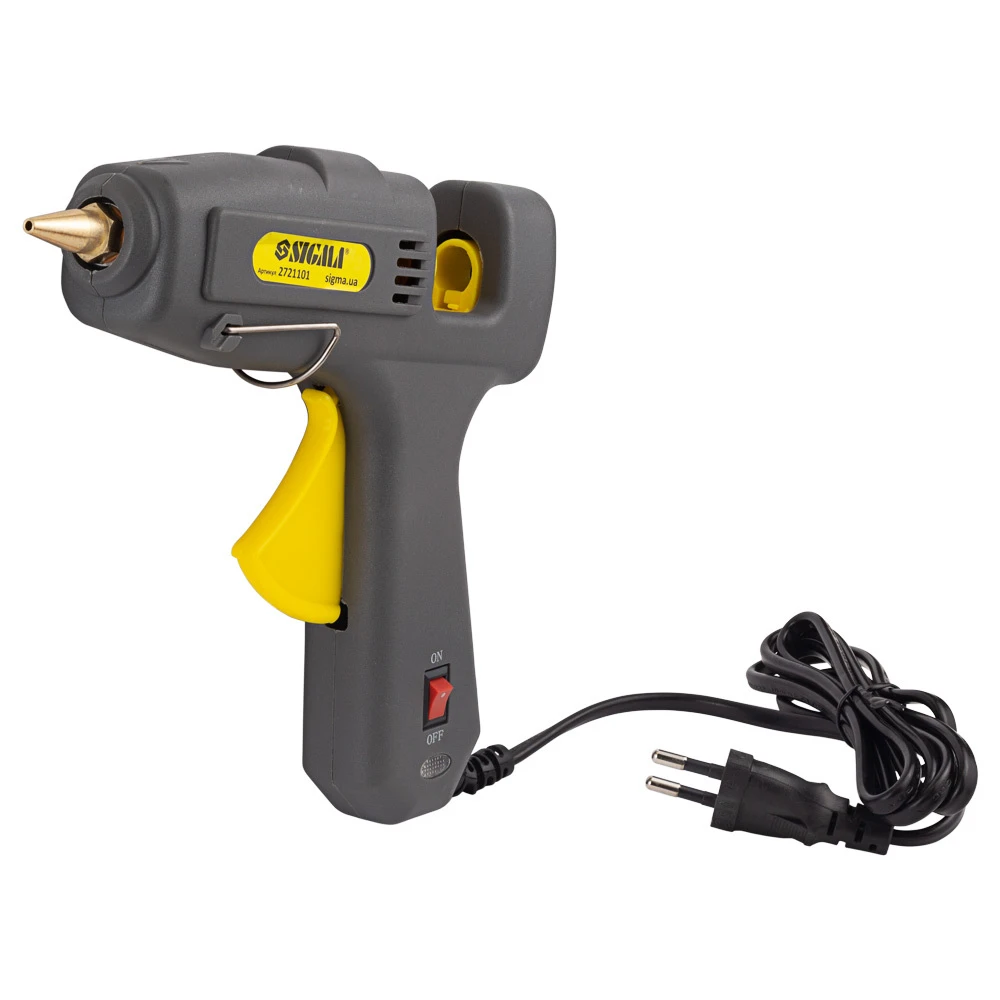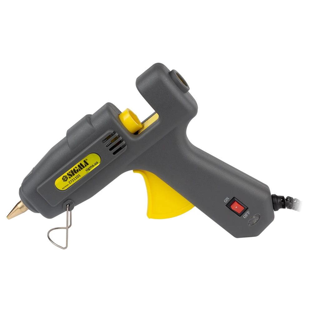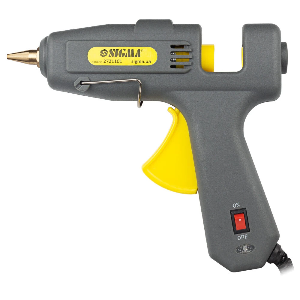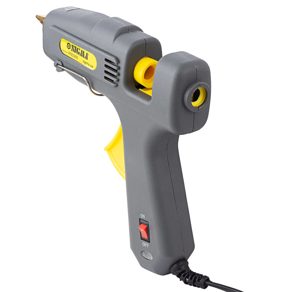 Пістолет термоклейовий з вимикачем Ø11.2мм 100(150)Вт SIGMA (2721101) відмінно підійде для тих, хто займається створенням всіляких аплікацій, підробок та інших декоративних виробів шляхом склеювання паперу, картону, дерева і навіть металу і кераміки. Здатний виконати завдання різного ступеня складності з даними матеріалами.