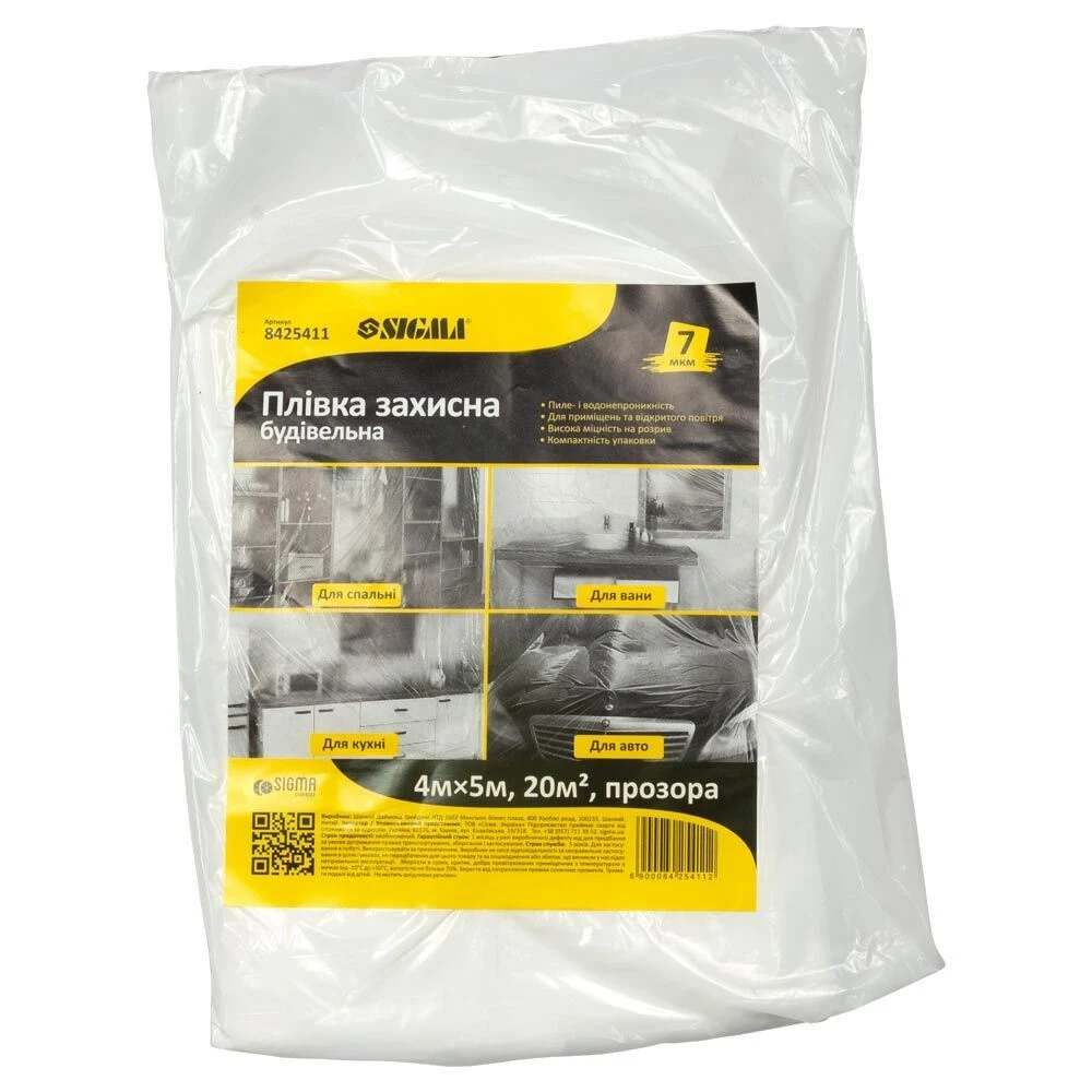 Плівка захисна будівельна 4×5м 7мкмт SIGMA (8425411) застосовується для захисту різного виду поверхонь від зовнішніх забруднень при ремонтних та інших видах робіт. Можливо застосовувати як в приміщеннях, так і на відкритому повітрі.