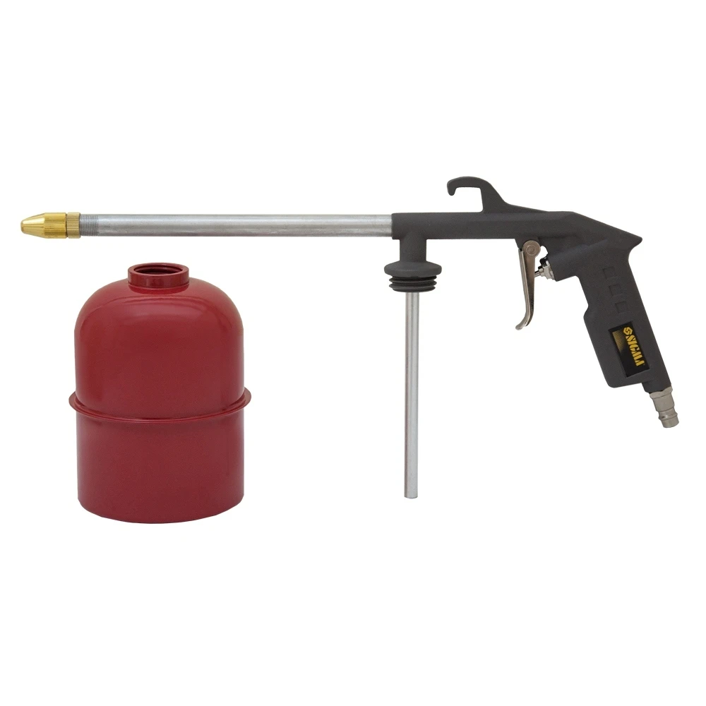 Пневмопистолет для нефтеванія SIGMA (6841011) призначений для промивання і змащення різних деталей і робочих поверхонь. Подовжена конструкція носика дозволяє проводити роботи у важкодоступних місцях.