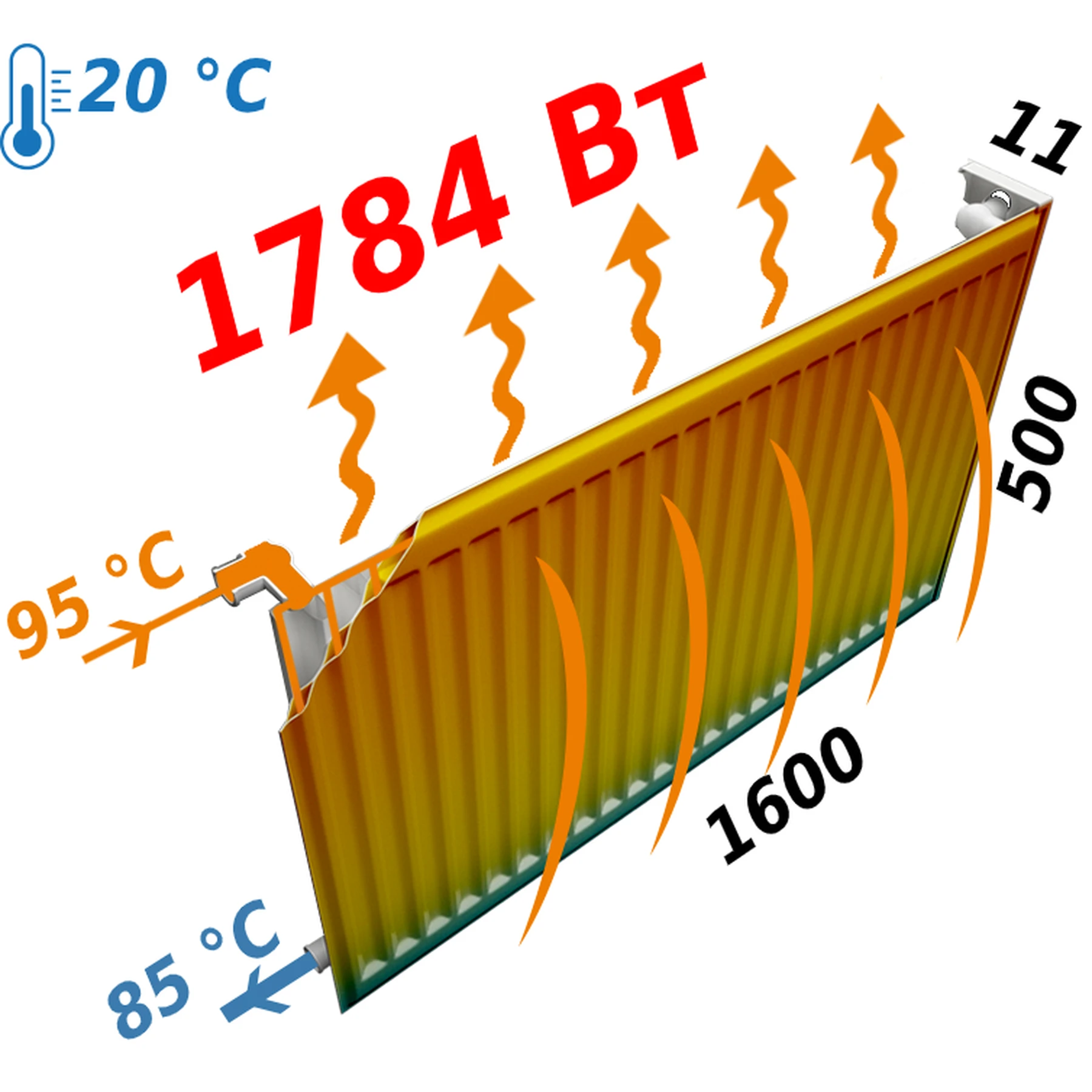 Радіатор сталевий панельний тип 11 (бок) 500х1600 KALDE 0311-rad-501600 1783Вт