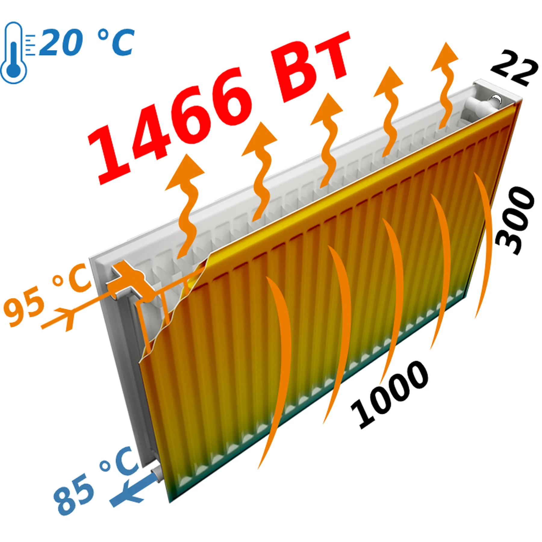 Радіатор сталевий панельний тип 22 (бок) 300х1000 KALDE 0322-rad-301000 1466Вт
